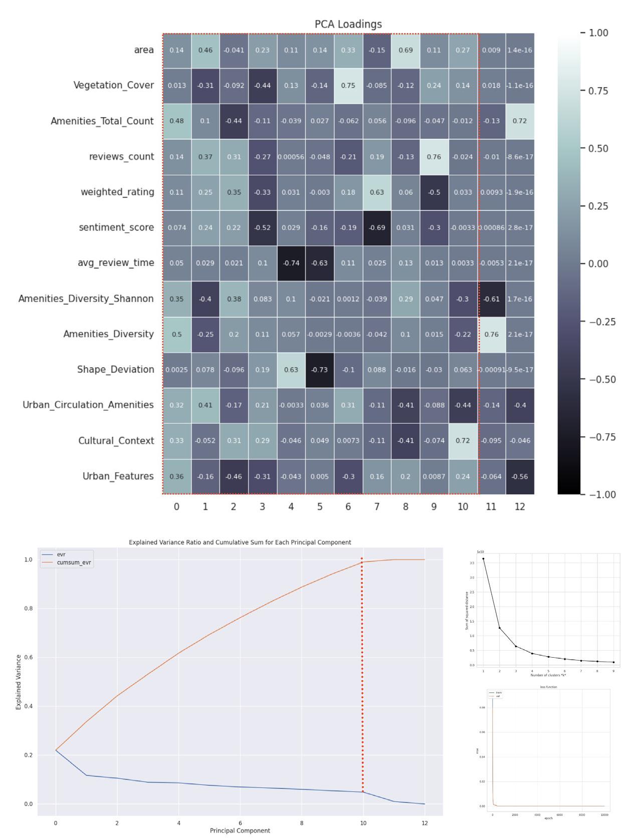 Then, we've sampled a smaller data group for experimentation. Following sentiment analysis, we analyzed word counts from reviews, grouped synonyms based on the top 100 most use words, and then applied PCA on the data attributes that contained those filters. Similar results on pca heatmaps and the kmeans led us to explore another method for tackling non-linearity."