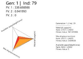 By observing the first few generation results, for example, in generation01 results, the shape of the prototype is closer to an exaggerated form. In these cases the value of the material consumables and the structural displacement are relatively large.