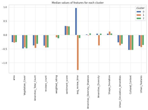 From our spider plots, we can discern diversity in vegetation cover and shape deviation among the three clusters.