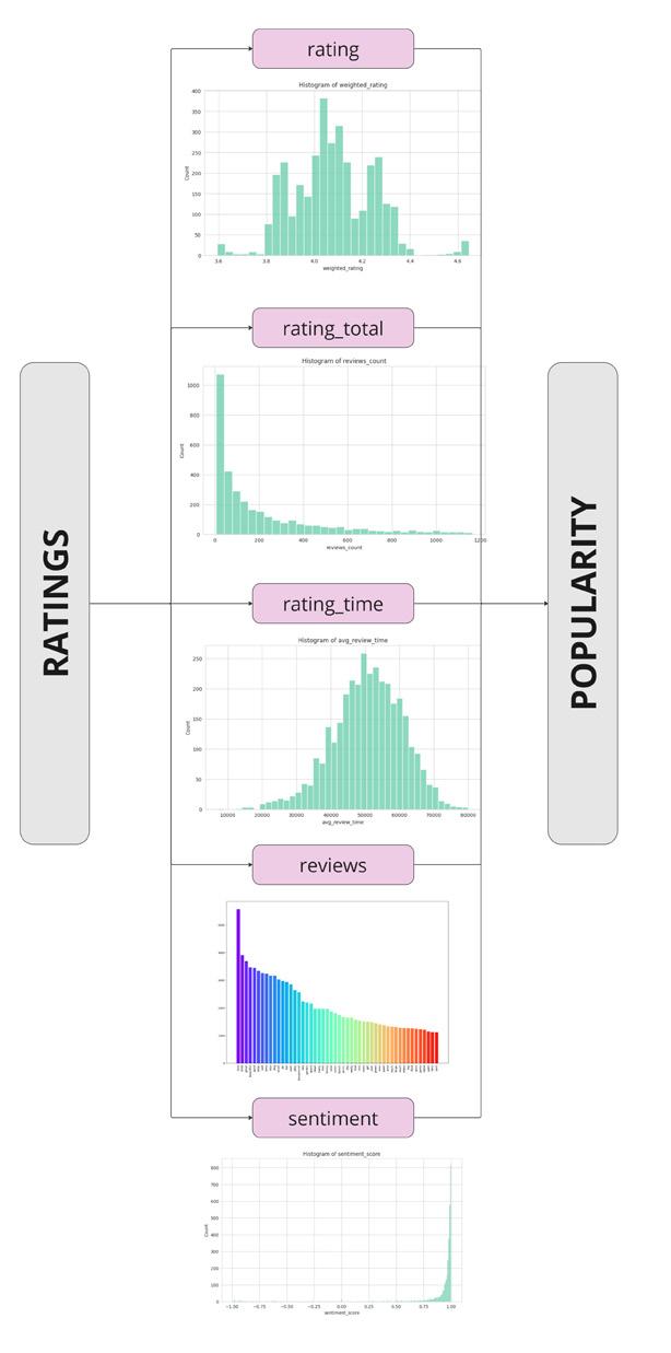 We started with a gut feeling that there was a direct and linear relation between the scores of a park and it’s appreciation but we had to rethink that very quickly as we didn’t find any relation. We removed the noise and reduced our dataset from ouliers to work on a smaller set that again wasn’t promising, what gave us a promising result was grouping a subset of parks that has a general very good feedback and we started to look for relations there leaving behind the attempt of finding a relation between people’s opinion an park’s urban design. Following a guidethrow of that process.