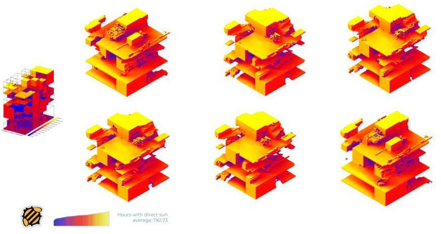 Sun hours < 1700 facade space