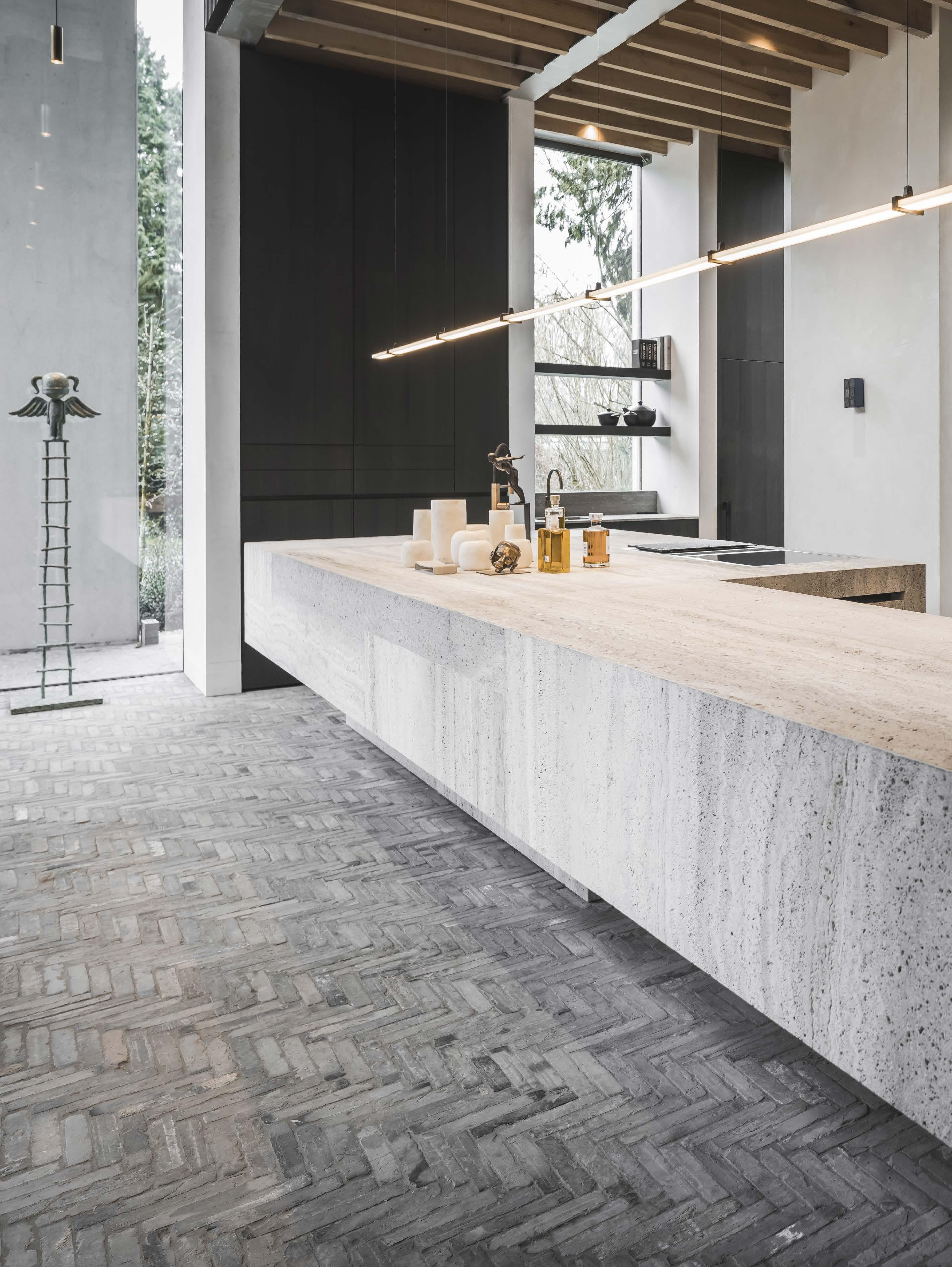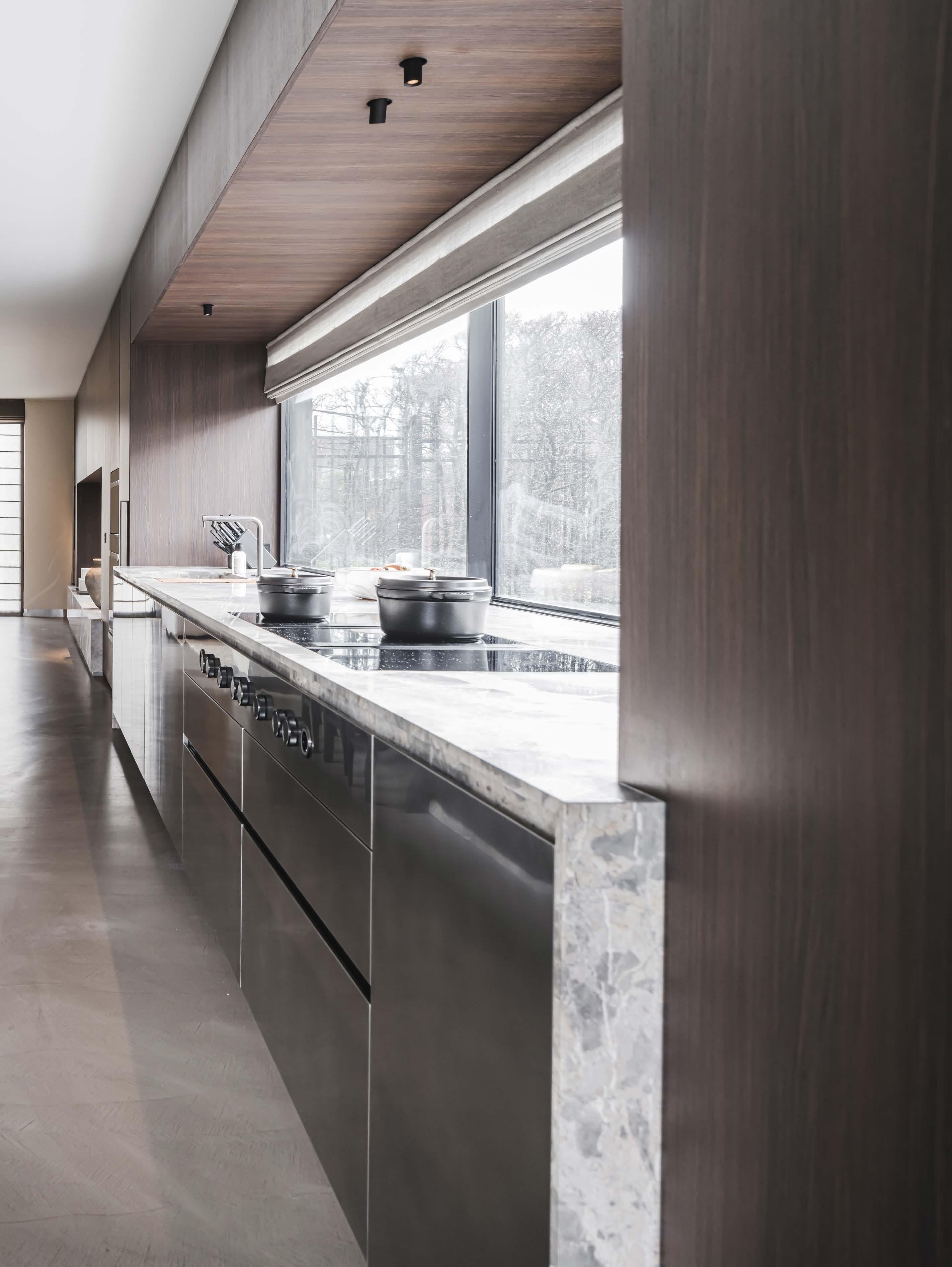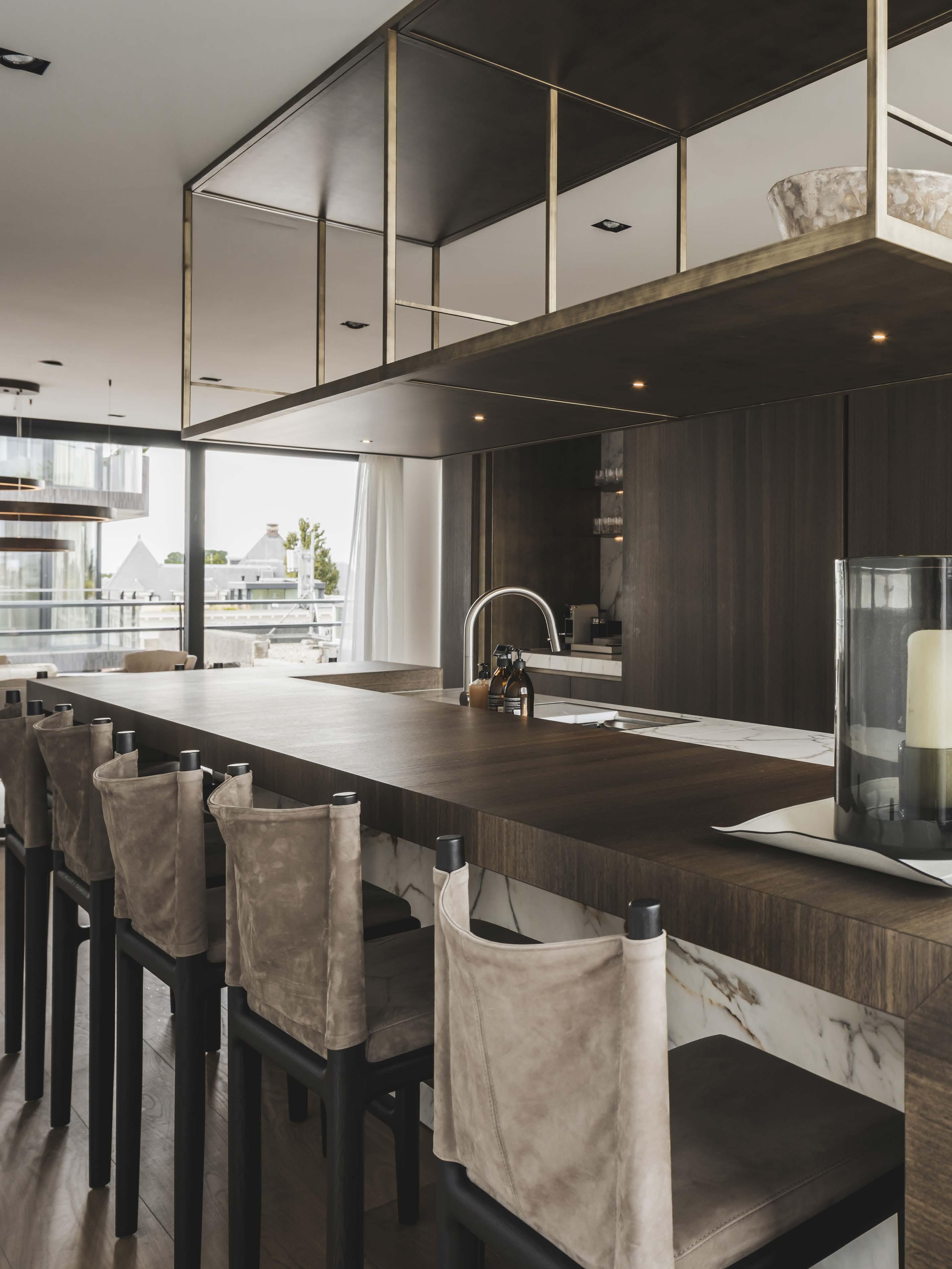 DEZE KEUKEN IS HET KLOPPEND HART VAN DE WONING: EEN MEESTERLIJK SAMENGESTELDE KEUKEN DIE WONEN, WERKEN EN CULINAIR GENOT NAADLOOS INTEGREERT.