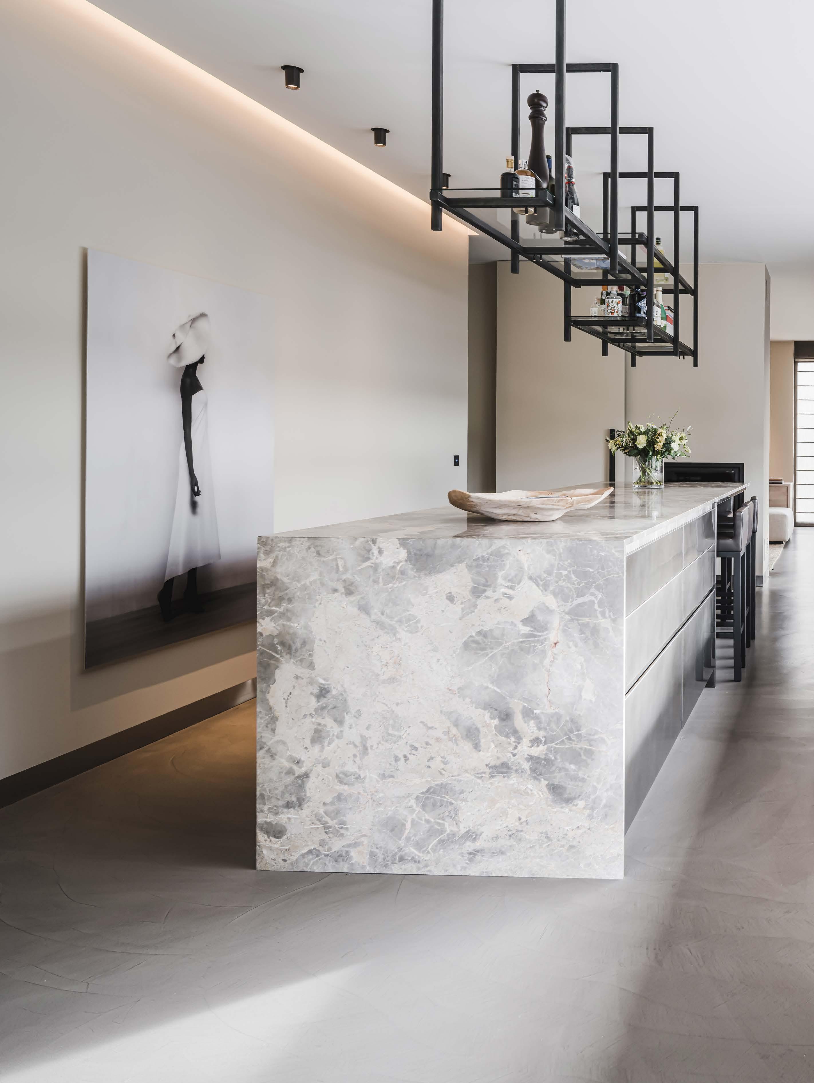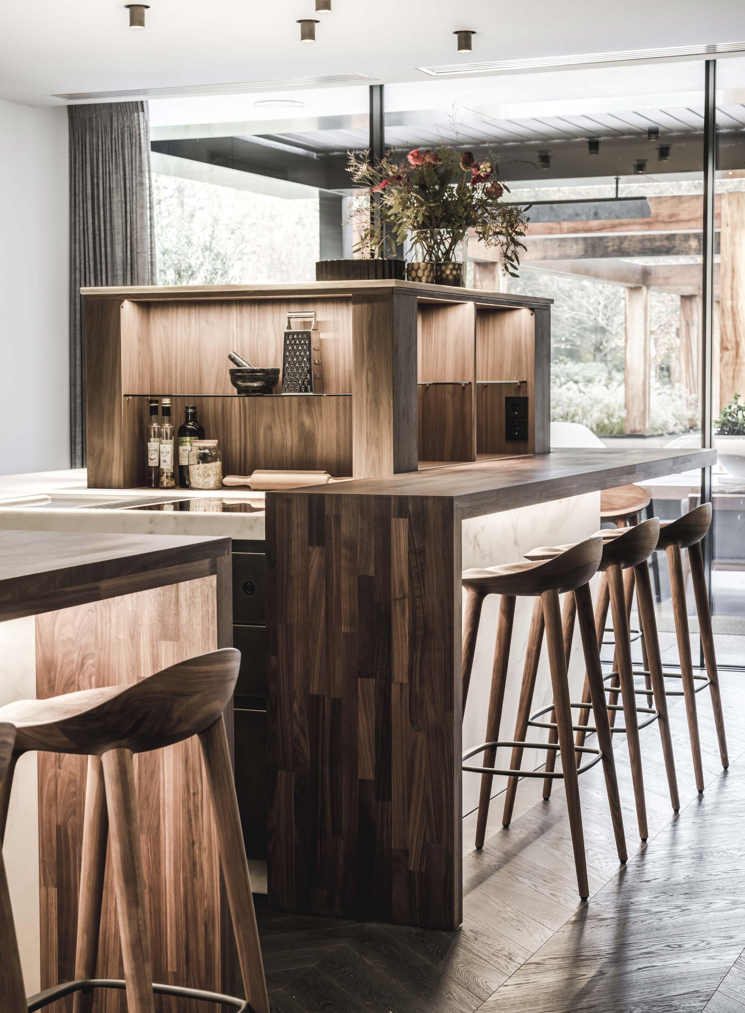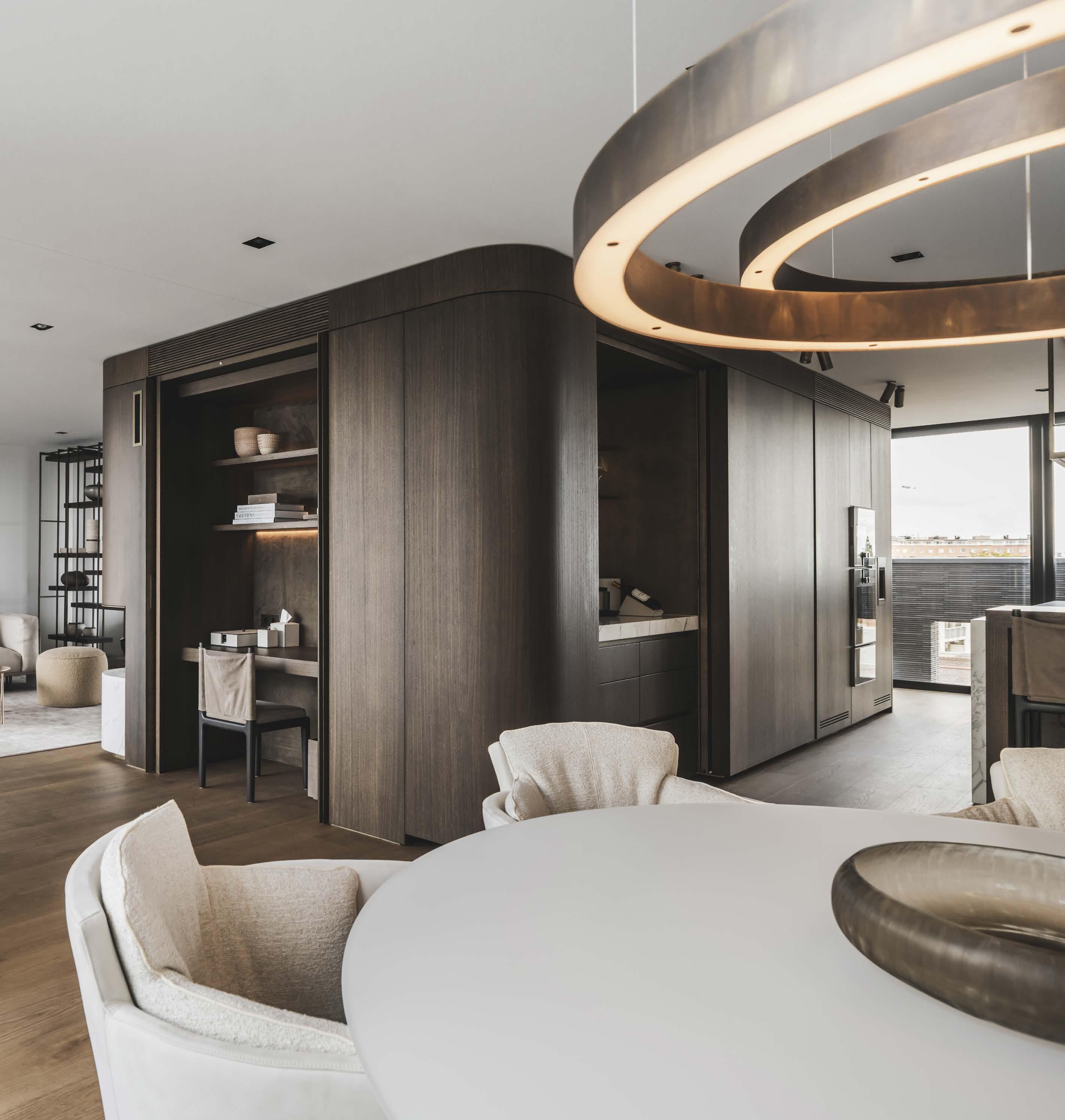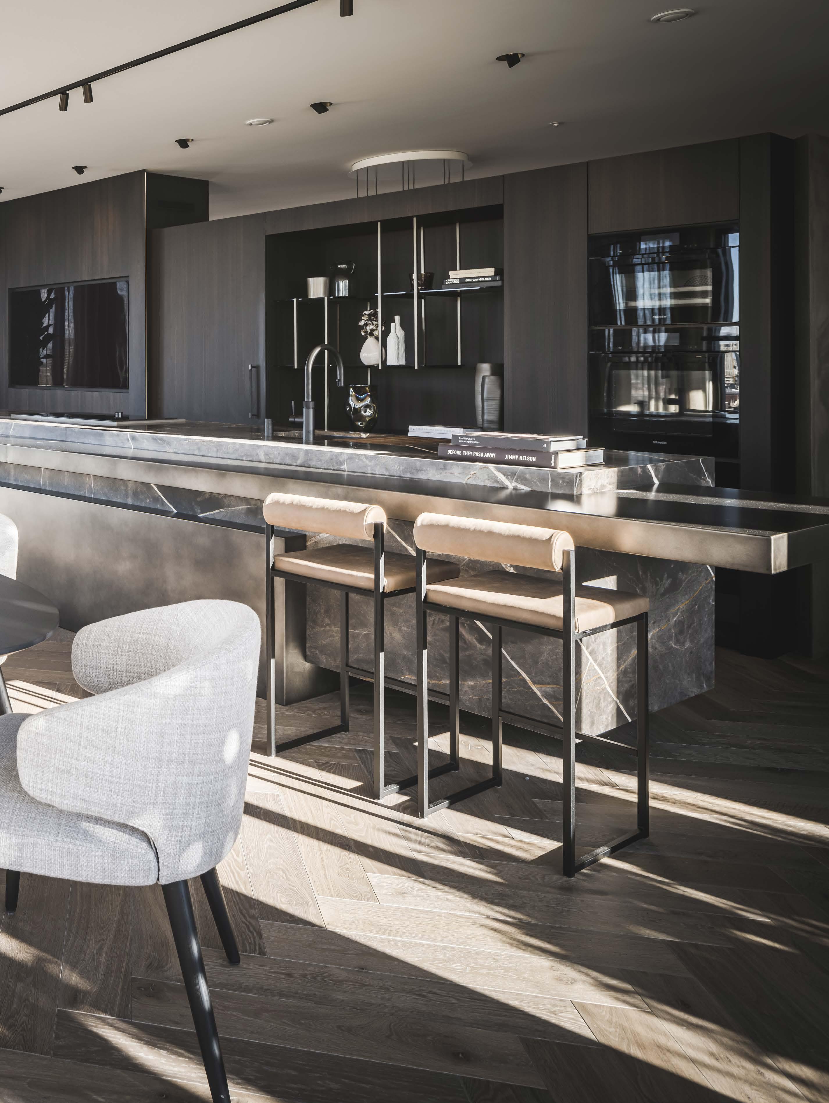 DEZE KEUKEN IS HET KLOPPEND HART VAN DE WONING: EEN MEESTERLIJK SAMENGESTELDE KEUKEN DIE WONEN, WERKEN EN CULINAIR GENOT NAADLOOS INTEGREERT.
