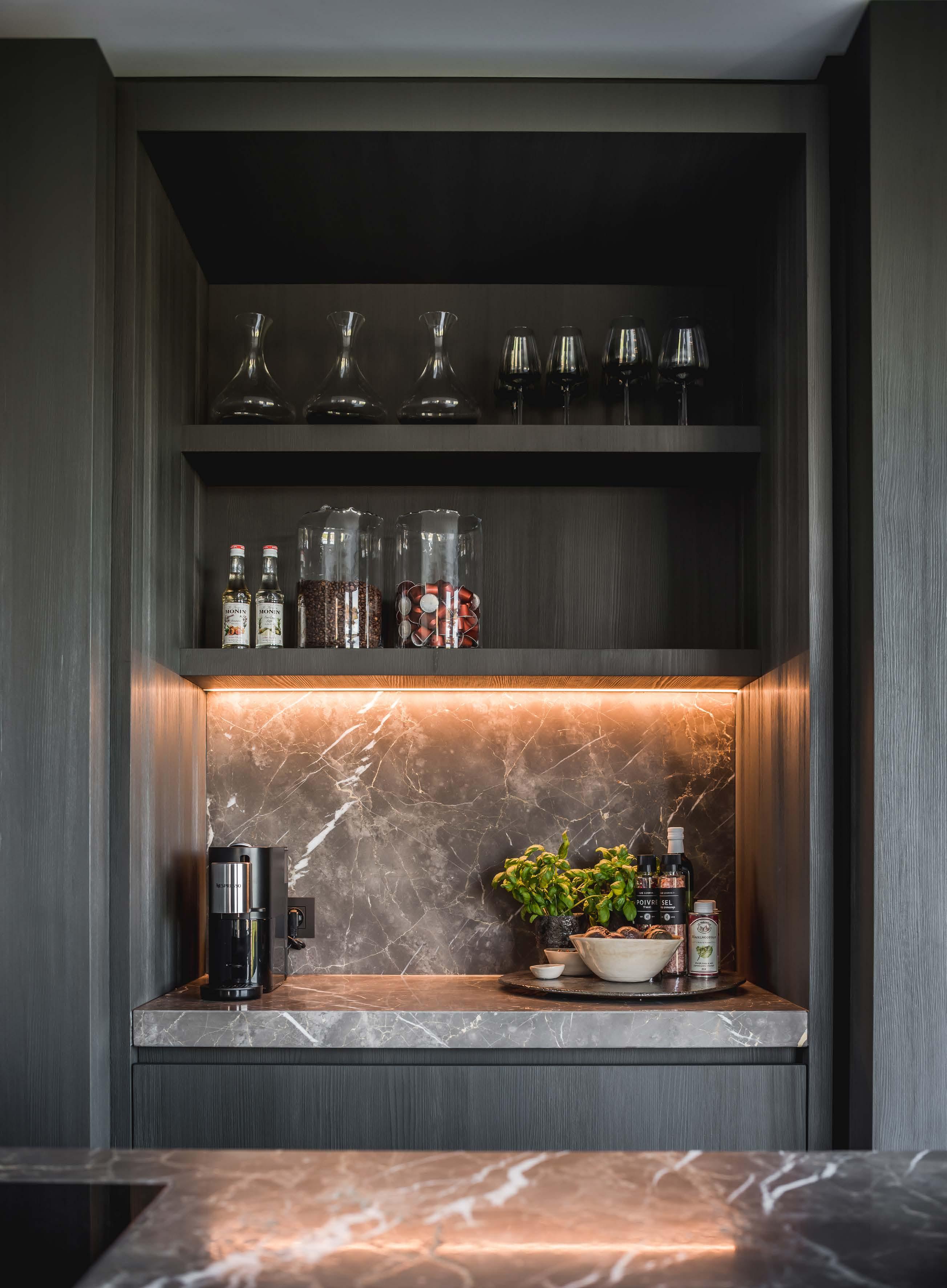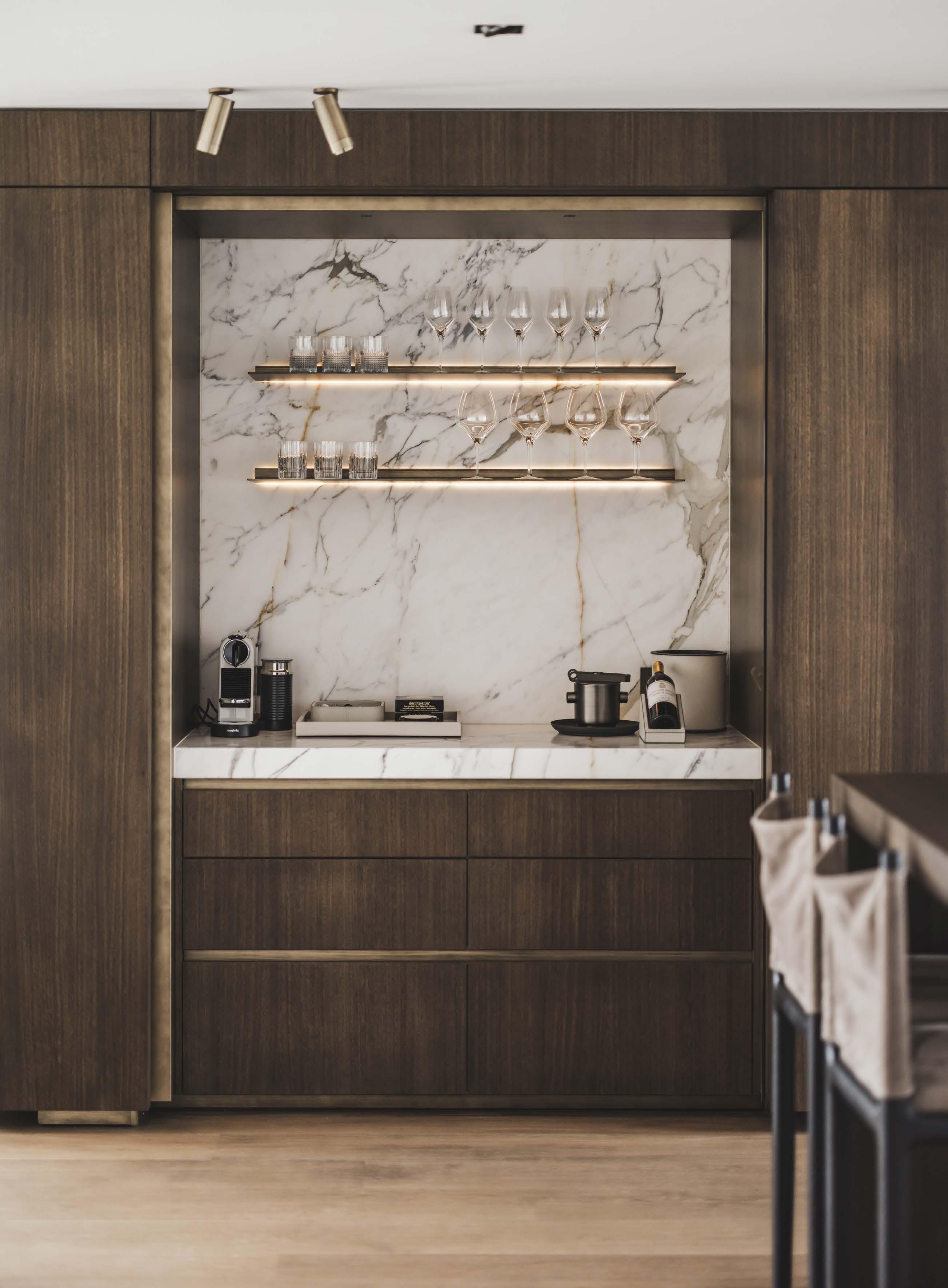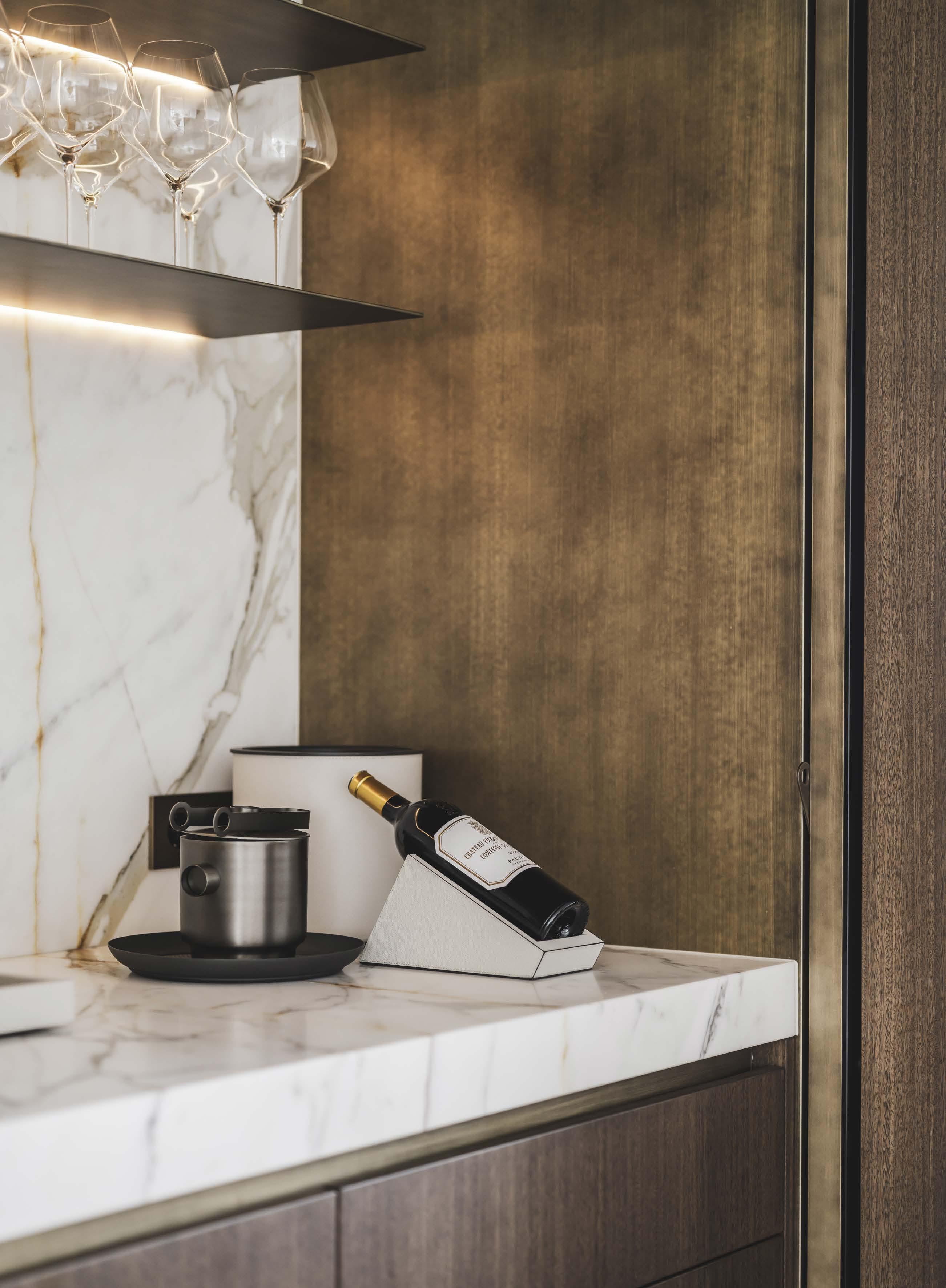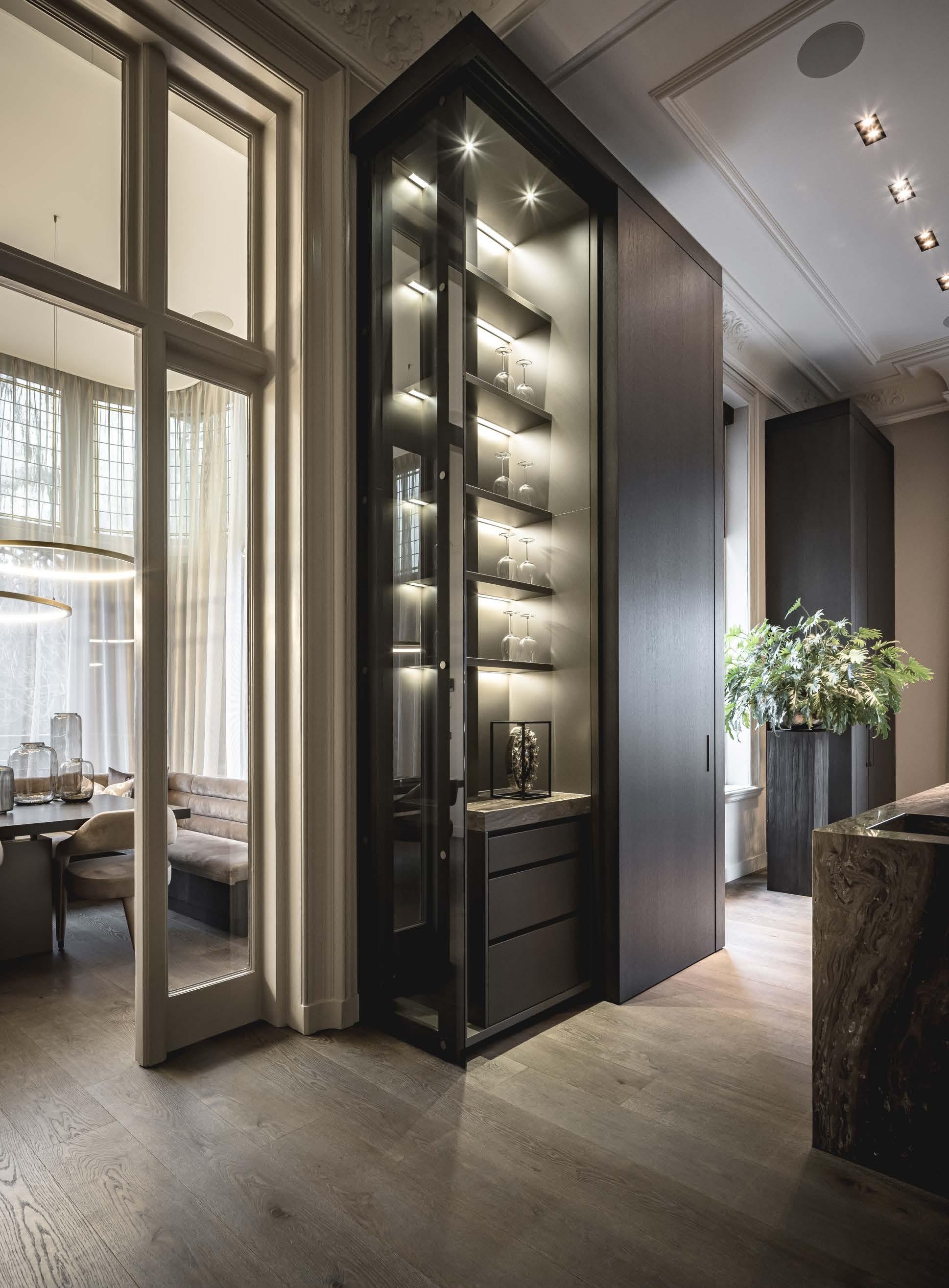 DE ICONISCHE CULIMAAT KOFFIENIS MET HAAR ELEGANTE GLAZEN DEUR ACCENTUEERT HET VERFIJNDE KARAKTER VAN HET ONTWERP.