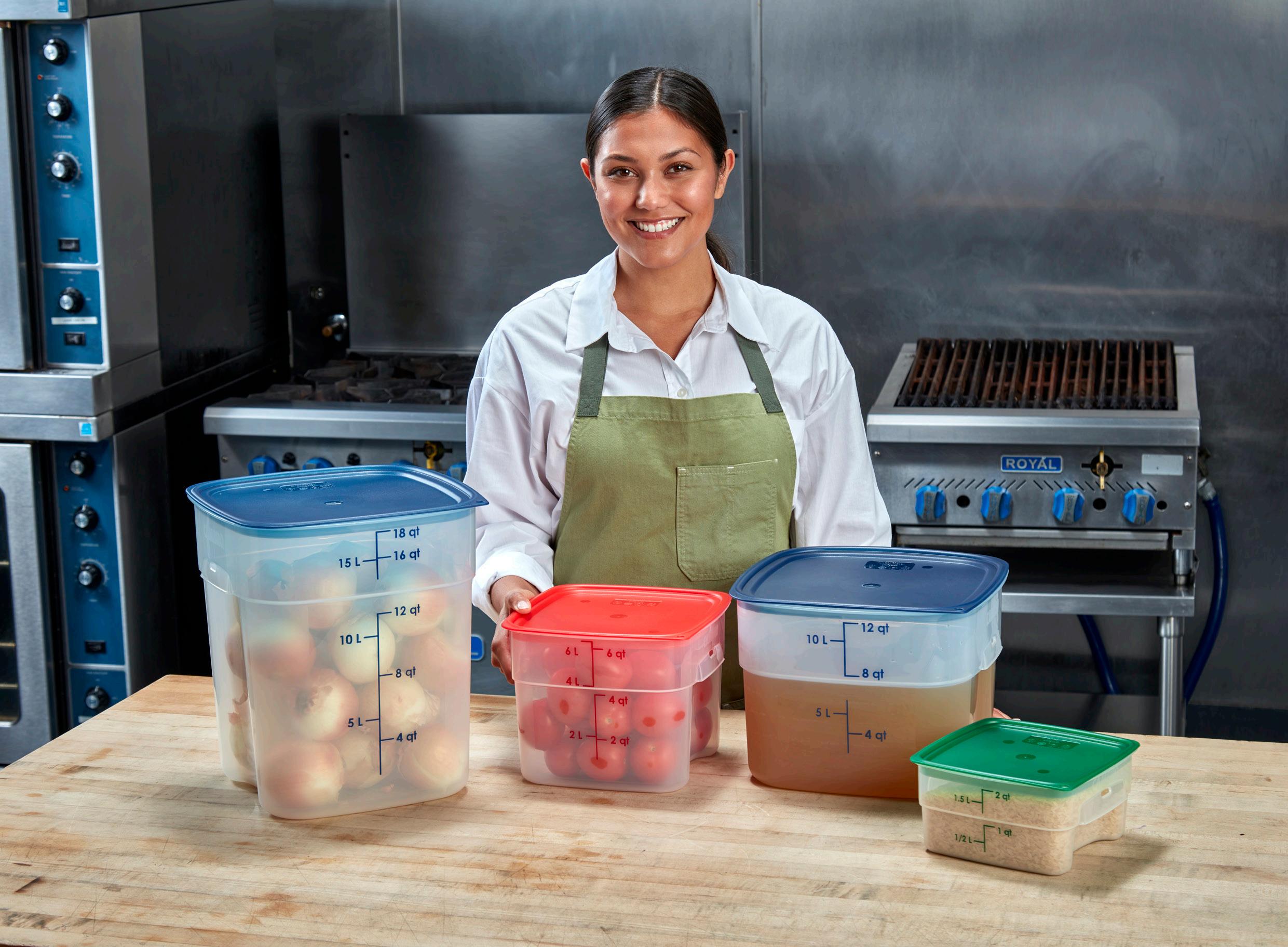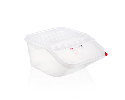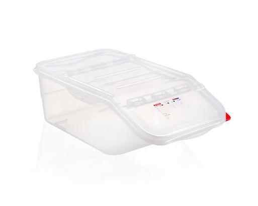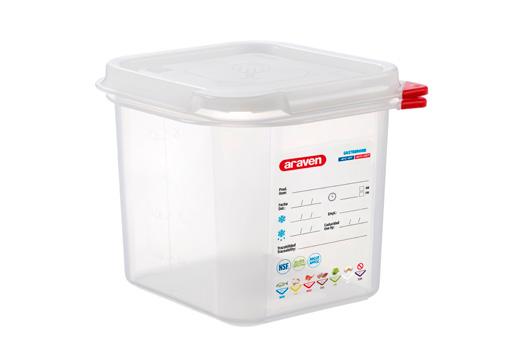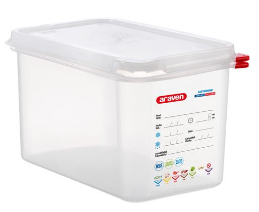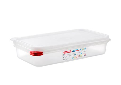Vi tilbyr 13 Araven GN bokser med lufttette lokk. Flippen på lokket kommer i 7 fargekoder, som gjør det enkelt å lage et system og holde oversikten. Alle boksene stabler med lokk, har runde kanter og liter/volum indikator på siden.