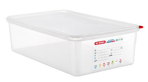 Vi tilbyr 13 Araven GN bokser med lufttette lokk. Flippen på lokket kommer i 7 fargekoder, som gjør det enkelt å lage et system og holde oversikten. Alle boksene stabler med lokk, har runde kanter og liter/volum indikator på siden.