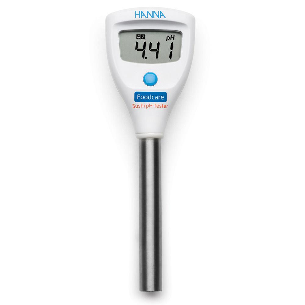 Hanna HI981035 pH-måler til sushi er laget for å forenkle pH-måling ved produksjon av sushi. Denne pH-måleren er spesialisert for måling av pH i sushiris. Den innebygde proben har en titankropp for god holdbarhet, en flat glasspiss for optimal kontaktflate og et åpent tilløp, noe som gjør den ideell for måling av pH i sushiris. Måleren har en nøyaktighet på ±0,05 pH og leveres med et CR2032 Liion batteri som gir opptil 800 timers kontinuerlig bruk. En stabiliseringsindikator på skjermen sikrer tillit til resultatene, mens den valgbare auto-off-funksjonen forlenger batteriets levetid. Måleren har også et robust design med en holdbar titan kropp for beskyttelse mot utilsiktet brudd, noe som gjør den egnet for bruk i matmiljøer.