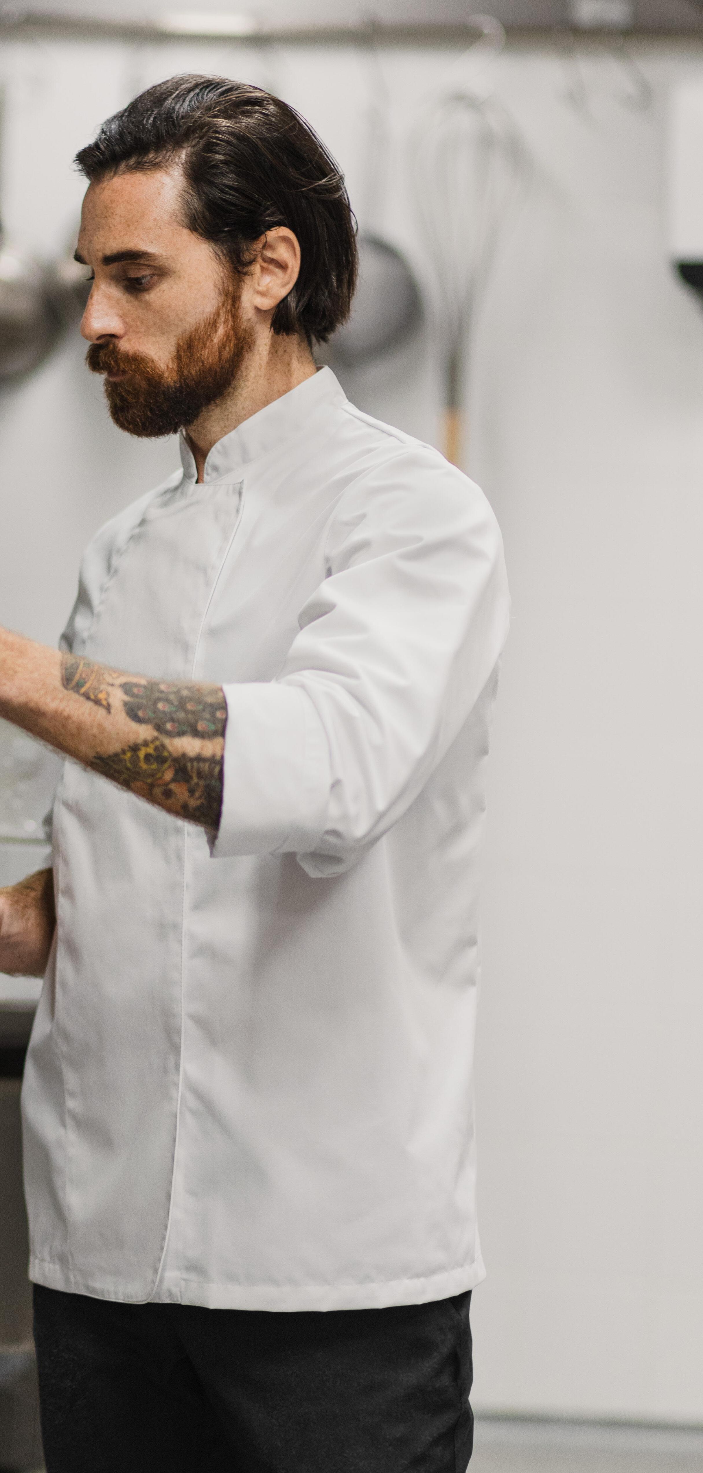 Moderne kokkejakke med lang arm.