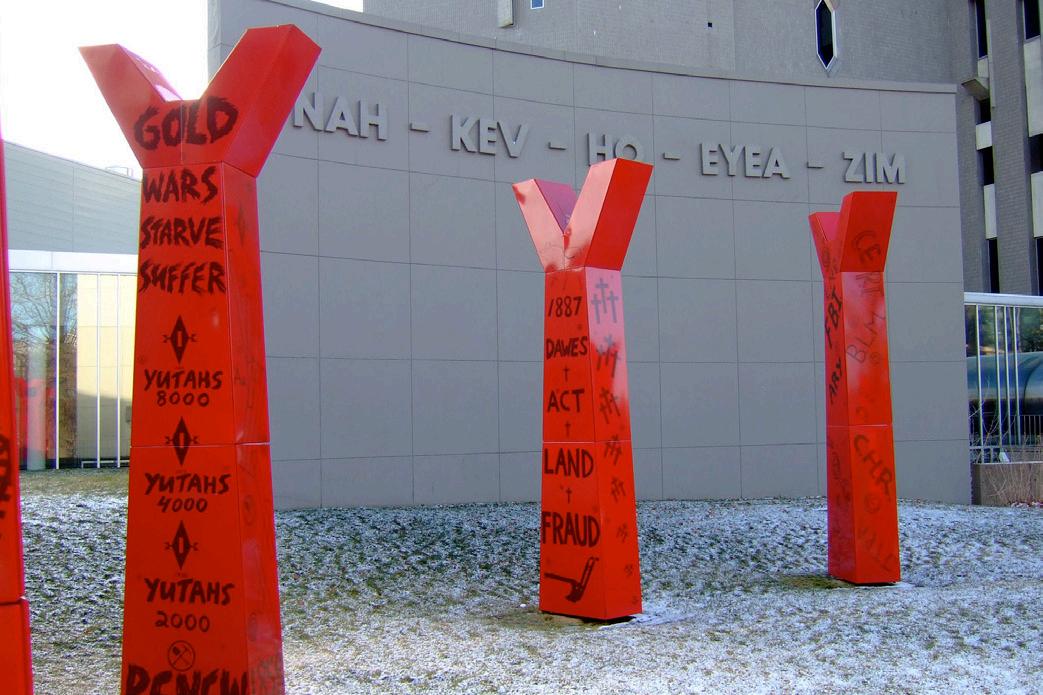 Edgar Heaps of Birds is an indigenous multi-discplinary artist from the Southern Cheyenne Tribe. He is best known for his public art messages exploring contemporary Native American issues.