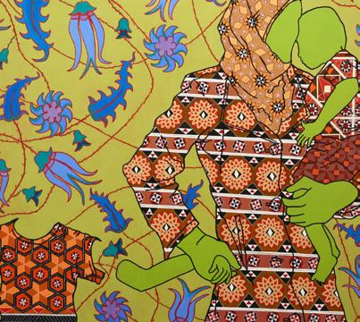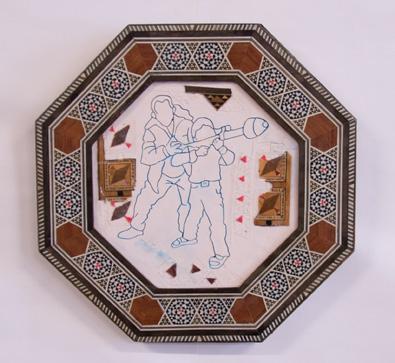 By using beautiful traditional Arab designs called Zellige to dress the figures in his work, Kasir shows the beauty of a culture and the tragedy as families try to hold on to it and each other as everything around them falls apart.