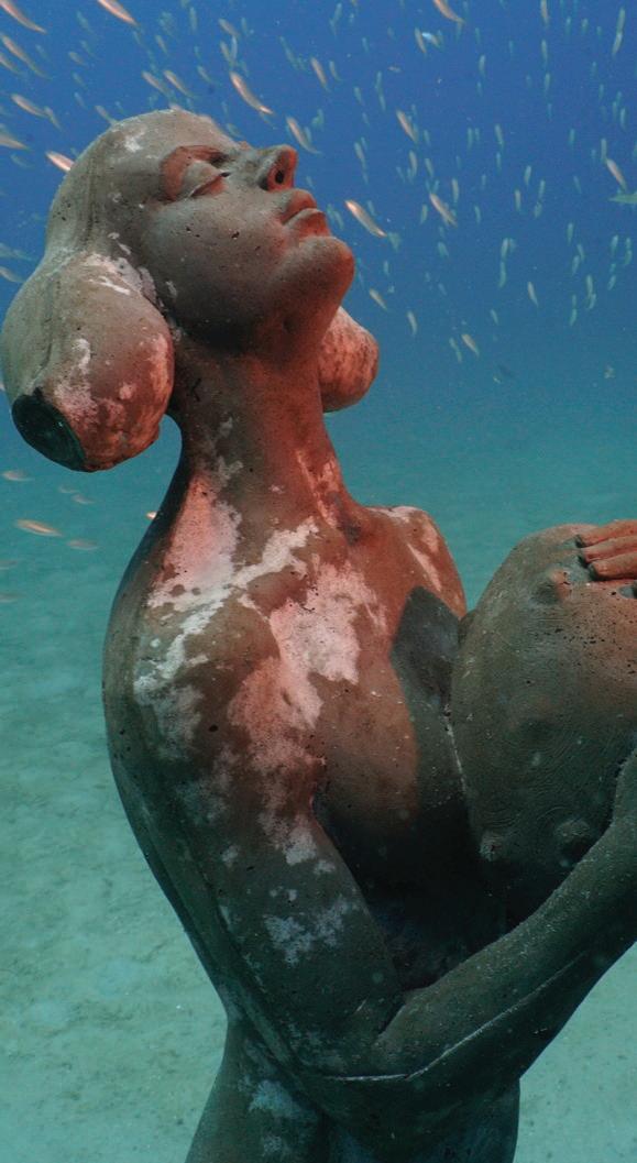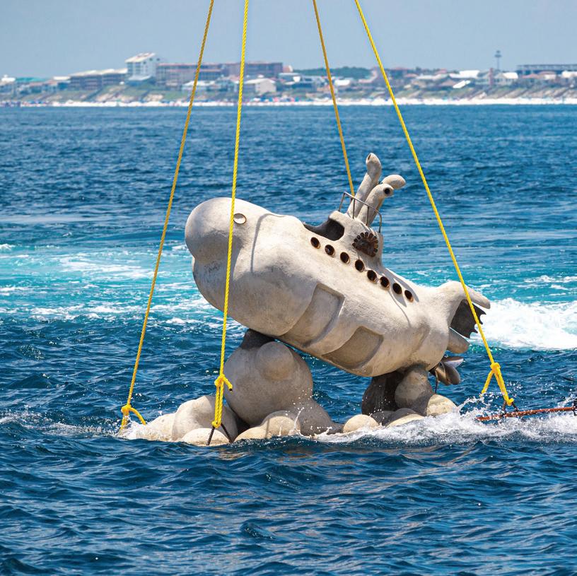 With support from Visit South Walton, Walter Marine/The Reefmaker, and the Florida Department of State; Division of Arts and Culture, the sculptures were deployed with SWARA’s existing USACOA and FDEP permitted artificial reef project that includes nine nearshore reefs located within one nautical mile of the shore in 58 feet of water. This installation joins the 25 sculptures previously deployed on a oneacre permit patch of seabed off Grayton Beach State Park, expanding the nation’s first permanent underwater museum to a total of 34 sculptures. The UMA patch will continue to be filled with several new sculptures annually.