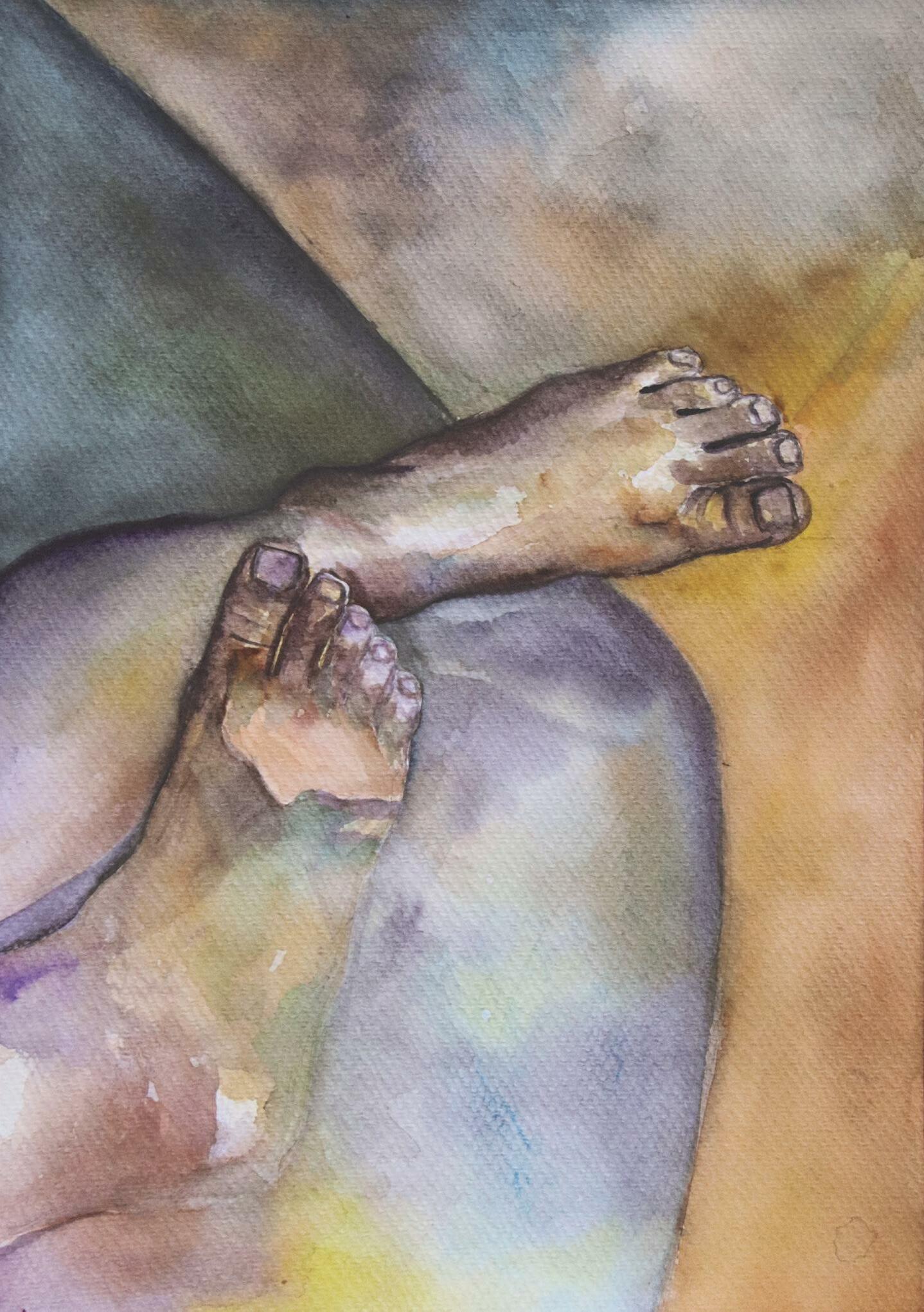 Cada una de las acuarelas está inspirada en capítulos y versículos concretos del Cantar de los Cantares. De las 14 acuarelas del cuerpo humano de mujer, solo una representa la figura femenina completa, el resto representa una parte del cuerpo humano, lo que me hace ligarla a uno de los tropos lingüísticos: la sinécdoque. La sinécdoque repre-senta el todo por la parte o bien, la parte por el todo. En latín totum pro parte se refiere al hecho de tomar el todo por una de sus partes y eso es lo que observo en la mayoría de las acuarelas de Bárbara Zavaleta.