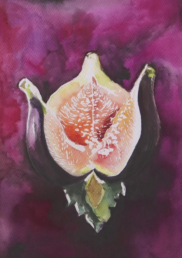 De estas acuarelas 5 son de frutas, frutas simbólicas ligadas a la representación sexual. La granada llama mi atención por poseer diversidad de significados. En la Grecia Antigua se le consideraba símbolo de Hera y Afrodita. Se afirma que los hierofantes de Eleusis se coronaban con ramas de granado durante los Misterios.