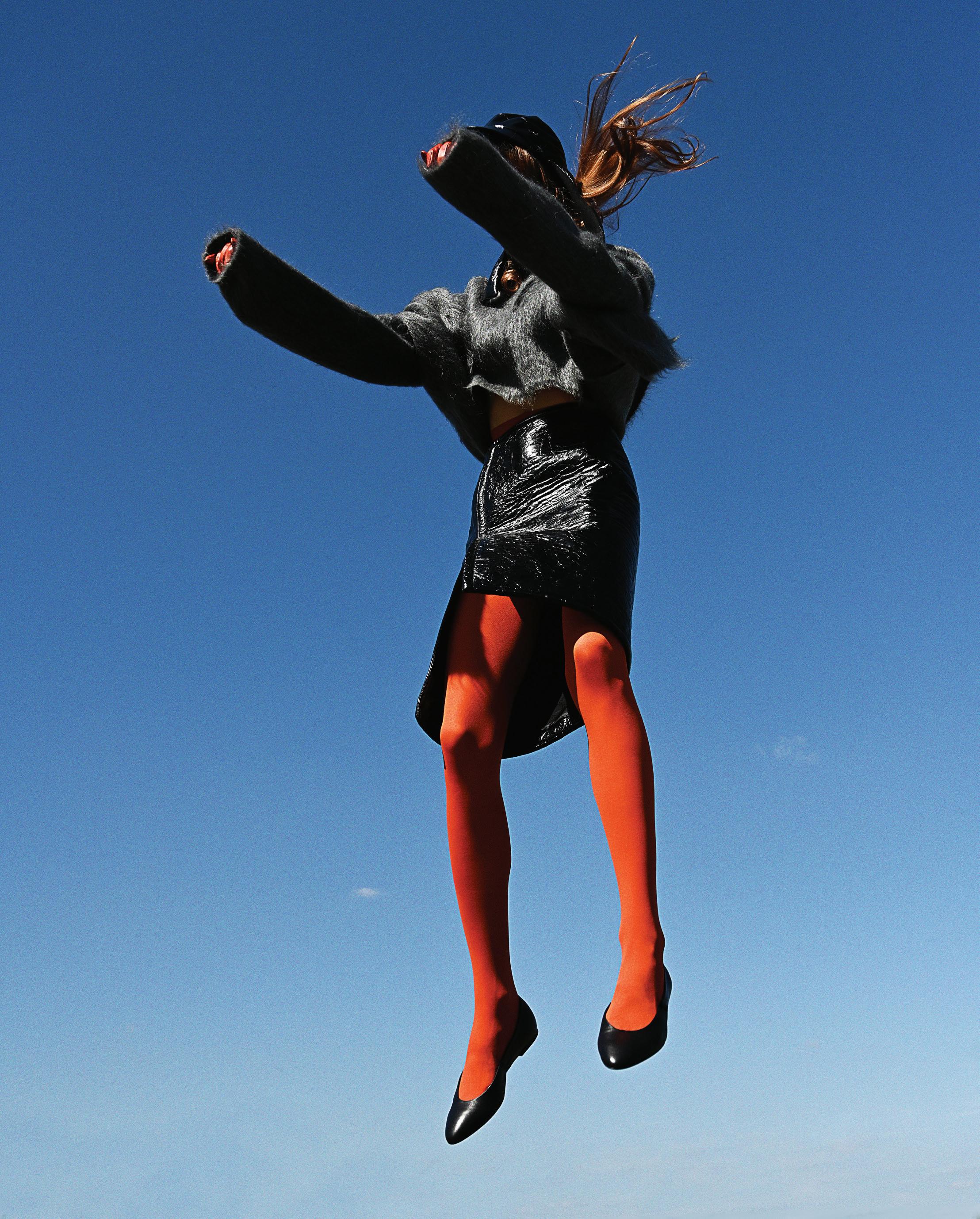 haunting, refusing to let go.” She knows those characters well, as the pair have been close friends since their teenage years, rising together into New York’s creative echelon. Shazam now works across disciplines as a photographer, model, and filmmaker who has lensed Chappell Roan, Doechii, and Charli XCX for Valentino Beauty, Interview, The Cut, and more. For this issue, she set Fox in a whimsical theater, complete with tomato throwing. “She moved through the space with this electric presence, breaking the fourth wall like it was second nature,” says Shazam. “It wasn’t just a shoot; it was a layered performance, raw and unapologetically her.”