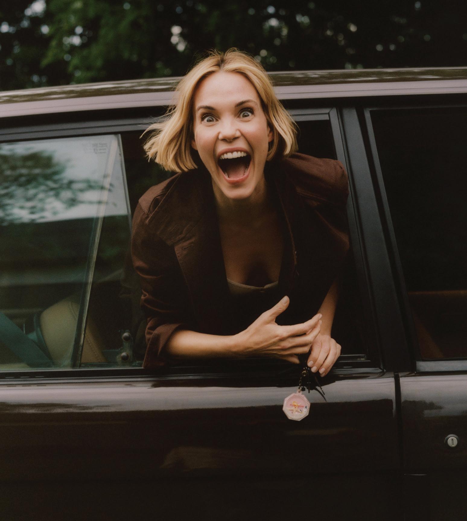 But when we speak a few days after her cover shoot for this issue—a joyride in the eternally estival East Hampton—Bibb is taking something of a break. She’s in Upstate New York now, at the home of a “very fancy interior designer” friend, her dog Gus wrapped around her feet. From her perch, she has a view of some Canada geese and a pond. She’s taking a moment to relax.