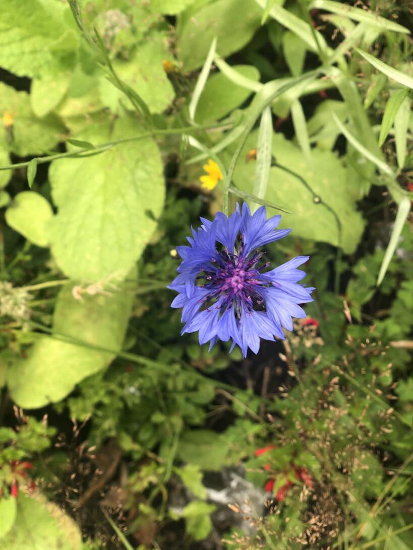 Wildflowers always find a way to grow even in the most challenging and difficult environments. The dazzling hue of the cornflower stands out anywhere. The vivid blue petals are a delight to the human eye – so are ladybirds, vital for any garden including those areas that are yet not known as a garden …though that conversation is for another day.