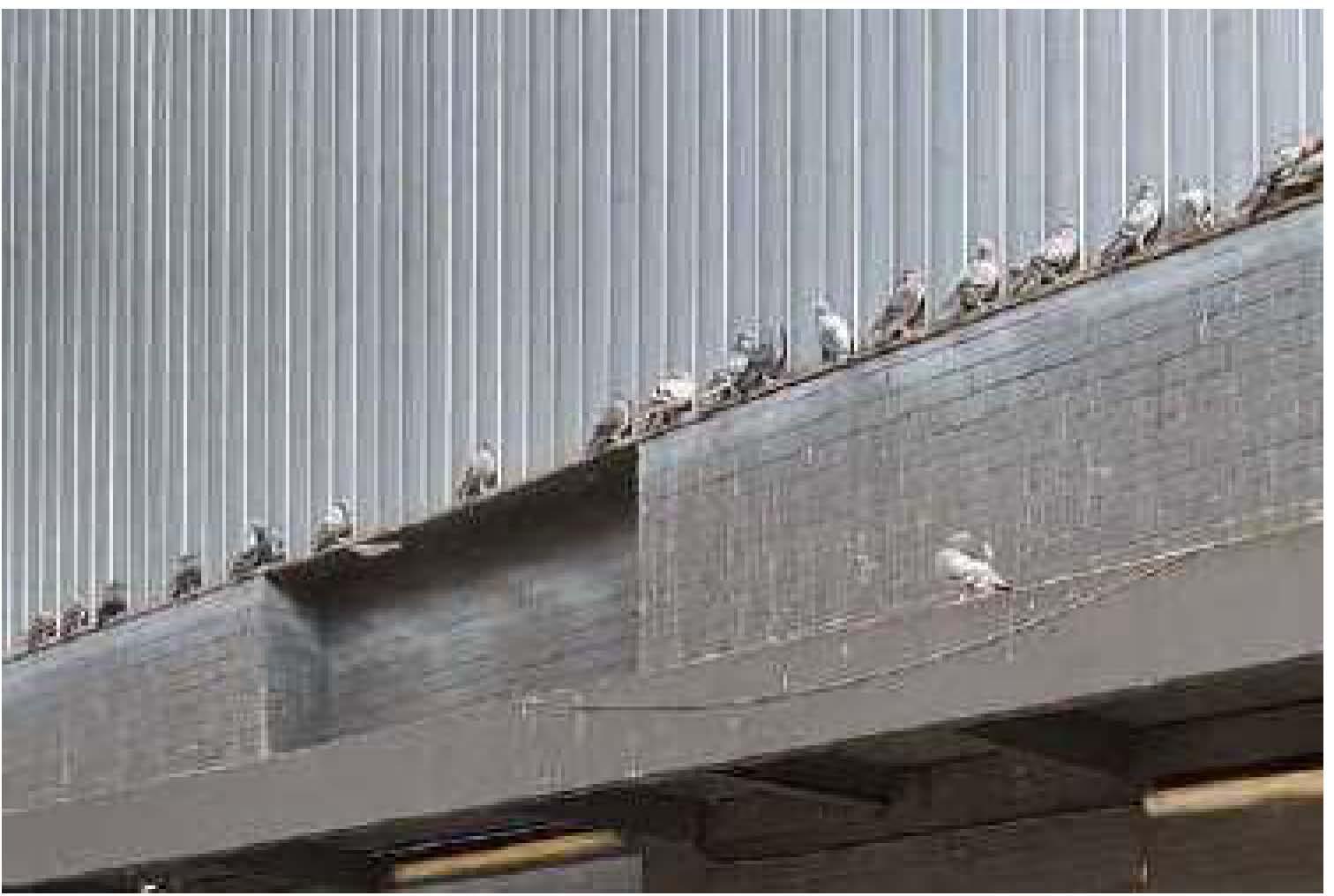 Pigeons roosting on facade paneling creatingunsanitary conditions