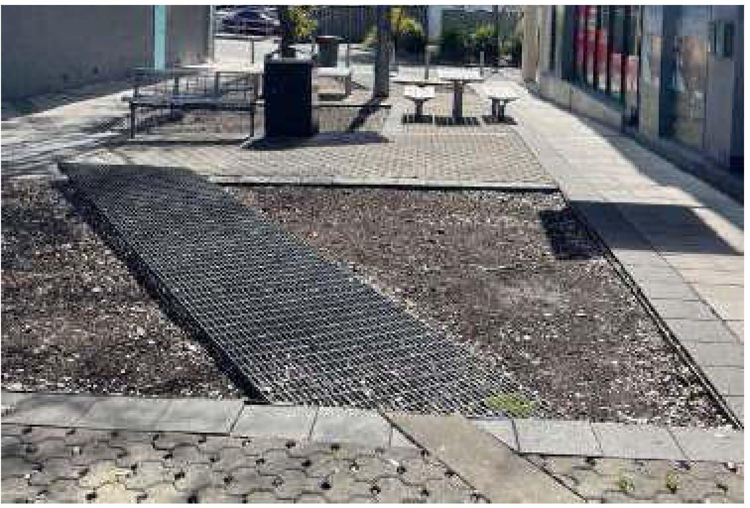 Permeable paving collects litter & is begrimed, contributing to an overalloutdated, unattractive image of the public domain