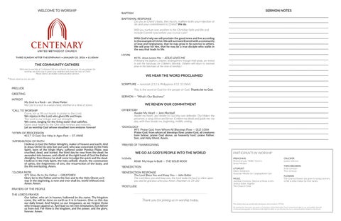 The anthem texts are printed with permission. One License A-707342 By entering the Sanctuary, you grant to Centenary United Methodist Church unrestricted right to use and publish, transmit or telecast photographs or likenesses that might be taken of you this day for use in communications related to the church.