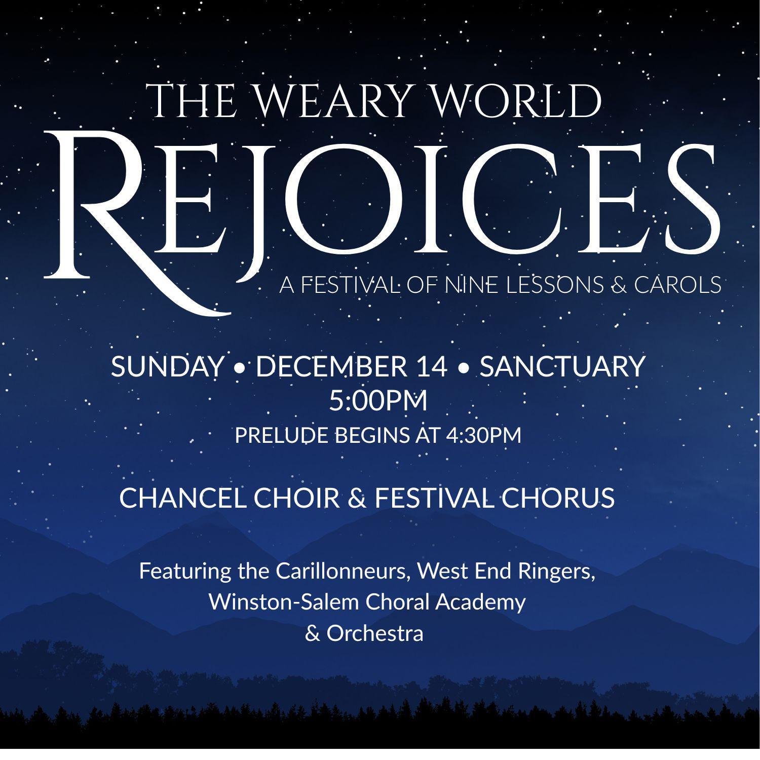 Join the Centenary Choir, Festival Chorus, Carillonneurs, West End Ringers, WinstonSalem Choral Academy, and orchestra for this beloved worship service.