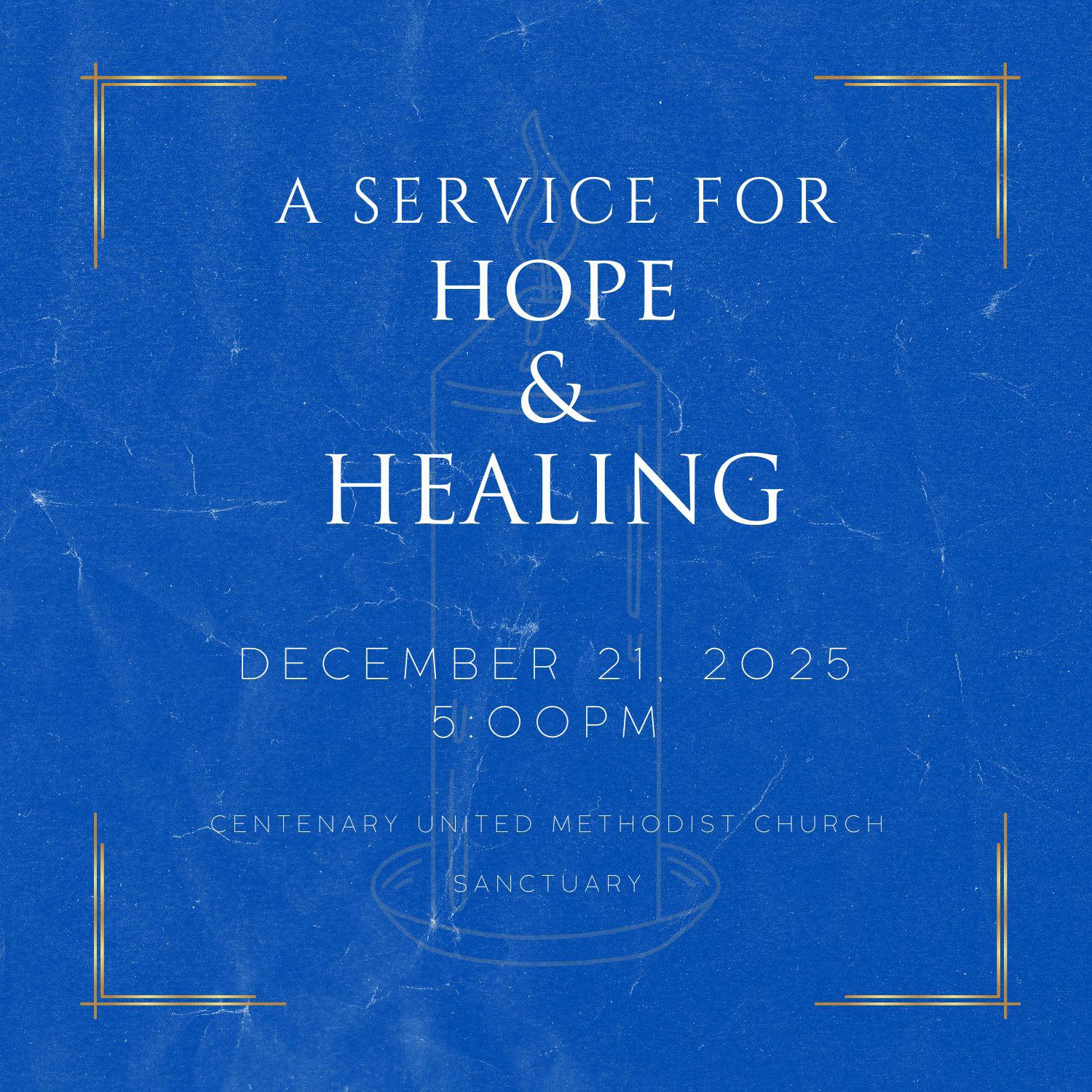 Sunday • December 21 • 5:00PM • Sanctuary Christmas is a season filled with joy and warmth, but for some, it can be a reminder of loss. Whether you are grieving someone you love, a lost opportunity, a strained relationship, stress about current events, or just having a hard time when others are celebrating, our Service for Hope and Healing can be a safe space for remembrance, prayer, Holy Communion, and healing on the longest night. Virginia Sheffield and Jonathan Emmons will provide worship music. Join us for an intimate evening where we can acknowledge our grief and yet embrace hope together. For more information, contact Rev. Oliver Helsabeck.