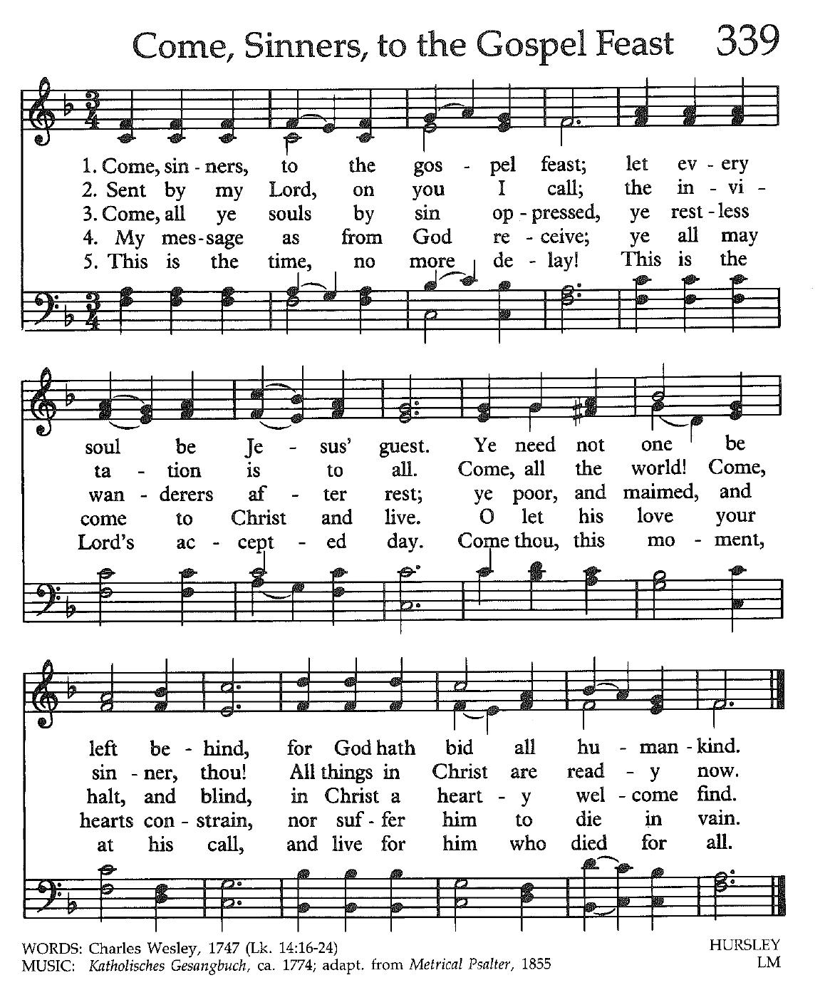 #339 Come, Sinners, to the Gospel Feast — HURSLEY