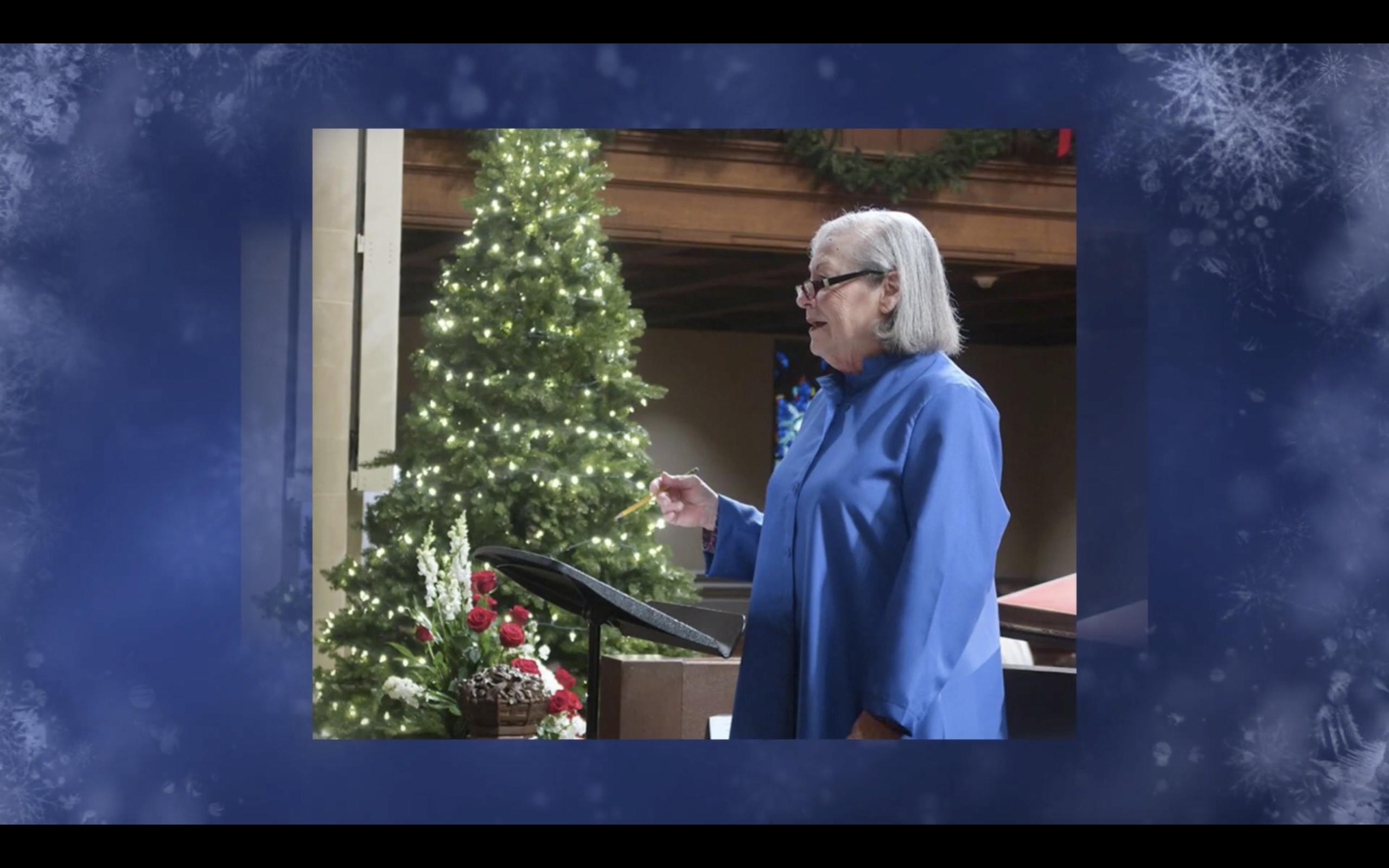 On Christmas Sunday, Anne Morgan, bell ringer extraordinaire, led the procession into the sanctuary “to the tintinnabulation that so musically wells from the bells, bells, bells.” The morning’s bulletin contained the following dedication:
