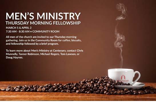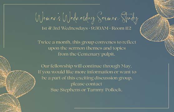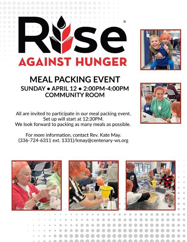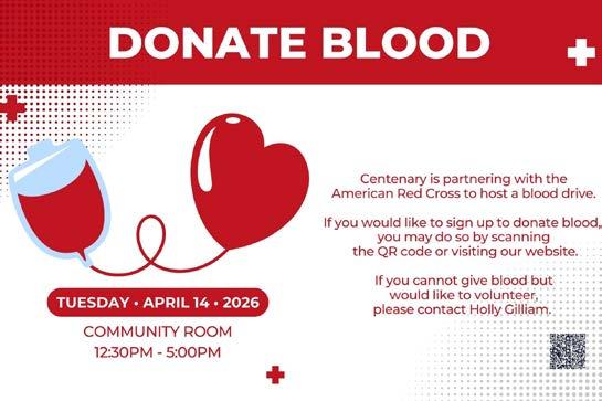 Along the way, we’ll also celebrate new beginnings—welcoming the newest members into the Centenary family— and we invite you to take part in opportunities to serve and connect. Two annual favorites return this spring: Rise Against Hunger, our hands-on mealpacking event, and our April blood drive, both offering tangible ways to love our neighbors.