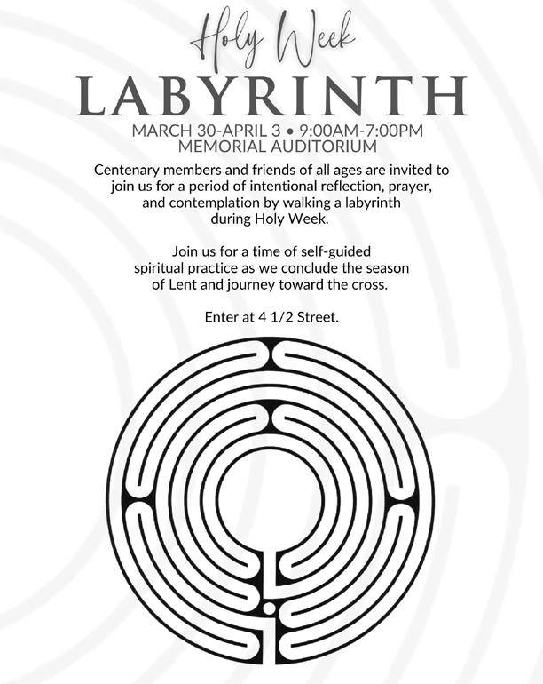 Throughout this March/April issue of Through Centenary Windows, we invite you to walk this Lenten path with us—to spend these 40 days and nights pondering and wondering, just as Christ did.