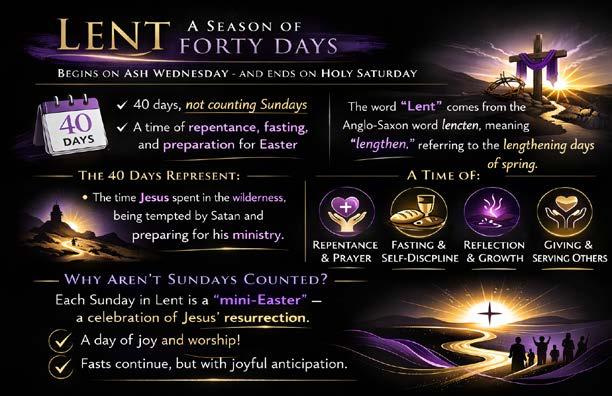 Lent invites us into something deeper—a sacred rhythm of repentance and prayer, fasting and self-discipline, reflection and growth, giving and serving. It is a quieter season. A more intentional one. There are no grand celebrations yet—only the journey that leads us toward the cross.