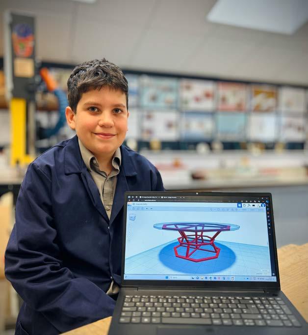 At the heart of her approach is peerled assessment, enabling the children to master their techniques and also become more resilient in the process. Always operating an open-door policy to the DT lab, Mrs Bramly has built deeprooted relationships with the children, supporting them every step of the way and break time is never quiet!