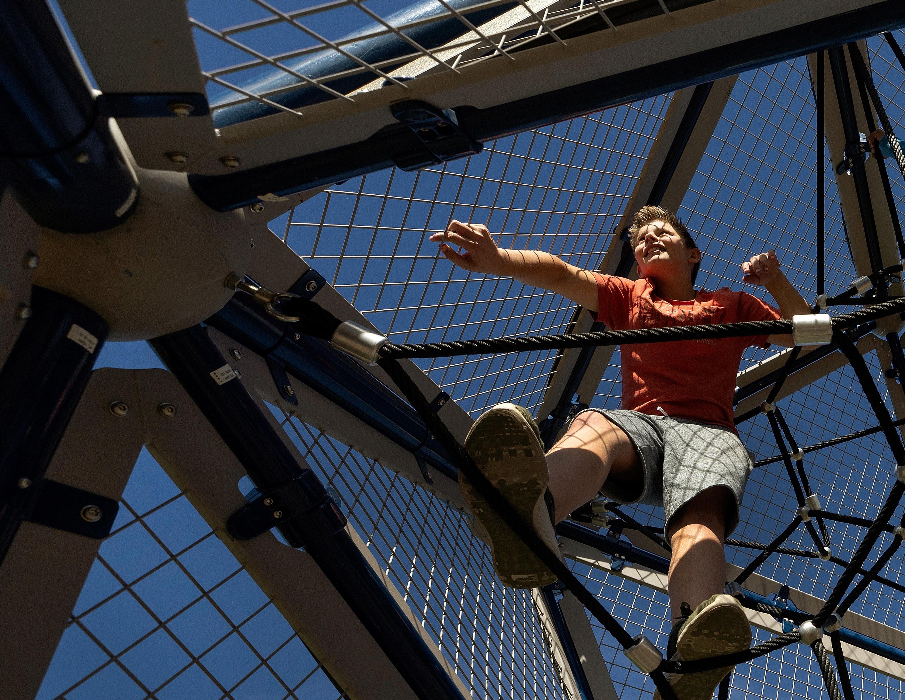 VistaRope® makes it fun and easy to design a play environment everyone will enjoy. Choose from our preconfigured dome or multi-sided climbers, net towers that stretch more than three stories tall, or the industry’s first inclusive climber with a transfer platform and accessible route of exploration.
