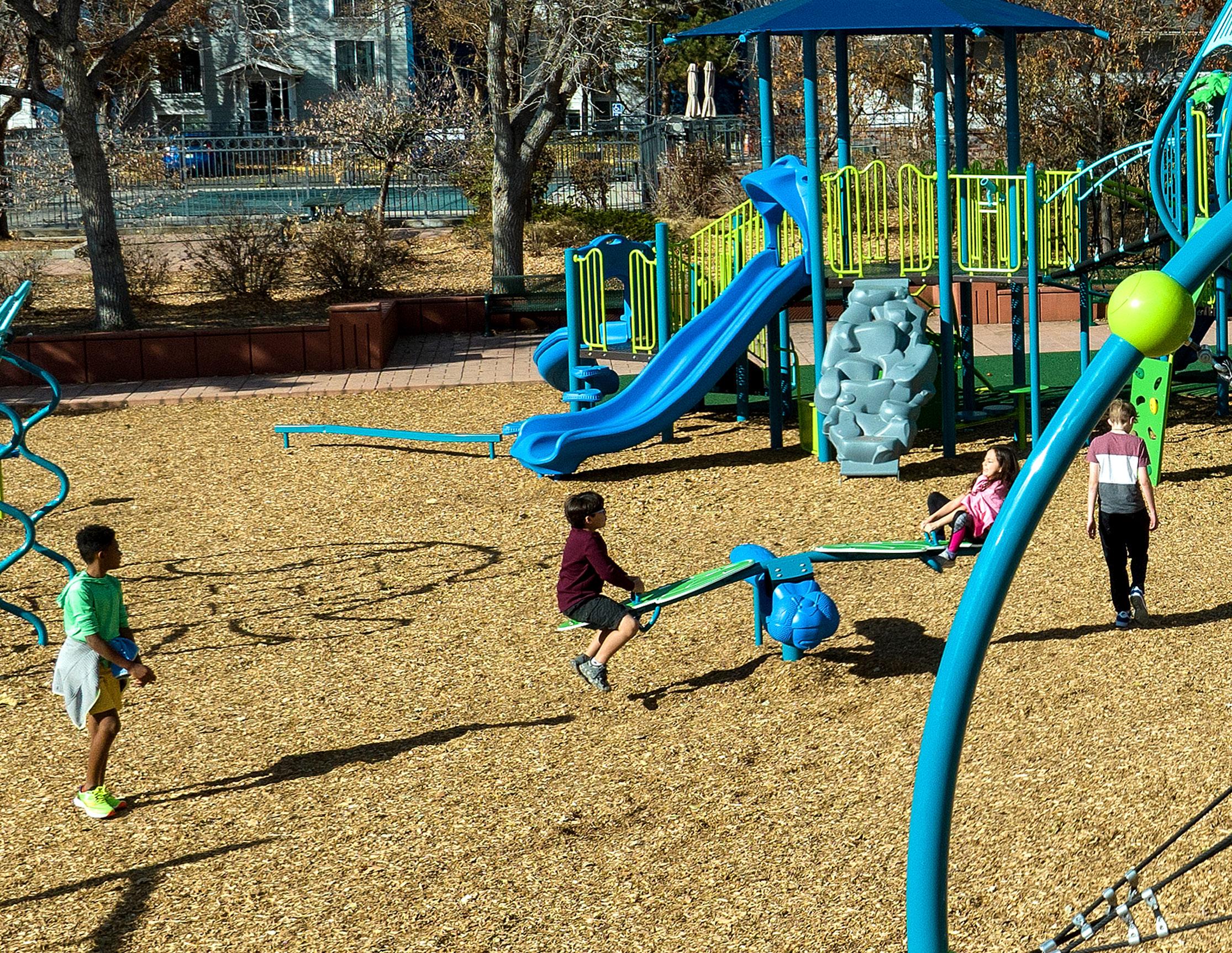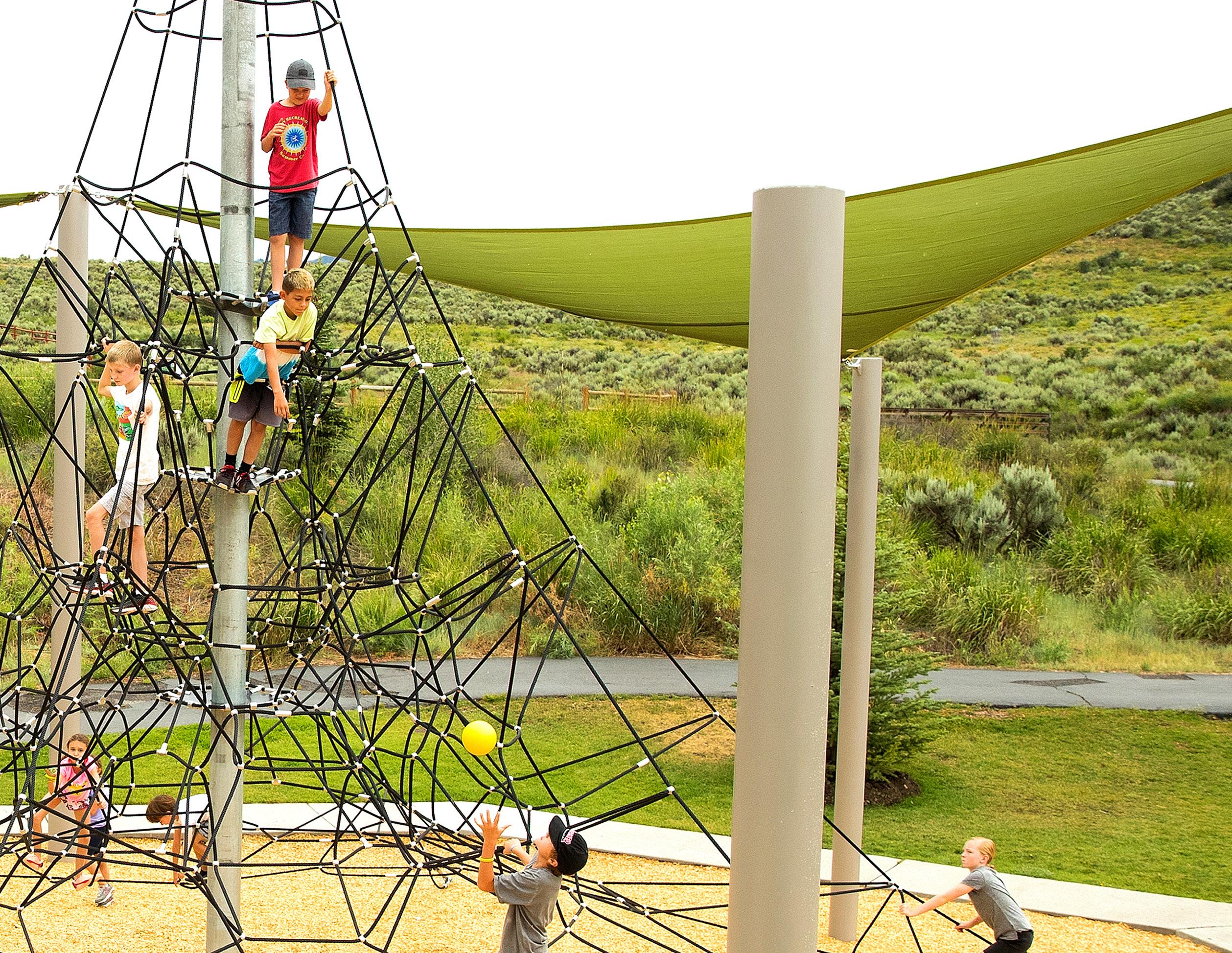 Combine with shade structures for a unique aesthetic and cooler, more comfortable play experience