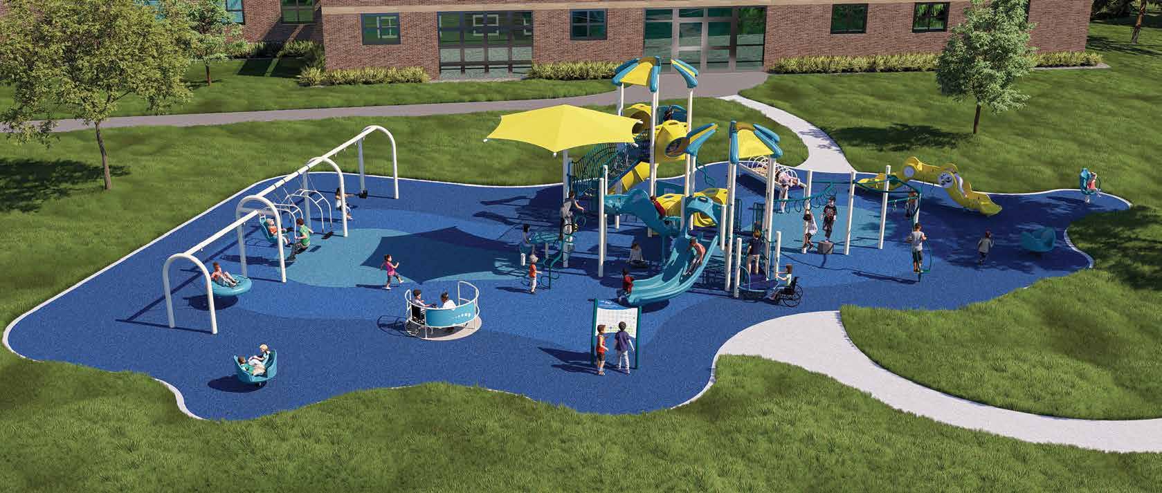 Inclusive playgrounds aren’t just about providing equal opportunities for children of all abilities—they’re also about welcoming different play styles and interests. The play space includes inclusive features such as ramps, poured-in-place rubber surfacing, an inclusive whirl, and half play panels providing both physical access and social inclusion for students who use mobility devices.