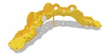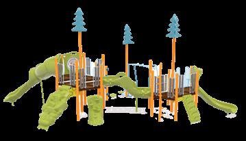 Children bond through friendly competition, and this playground design encourages it with a cyclical layout. A variety of climbers extend from the main system, branching out to either side, inviting children to use their imagination to create tracks and race against each other.