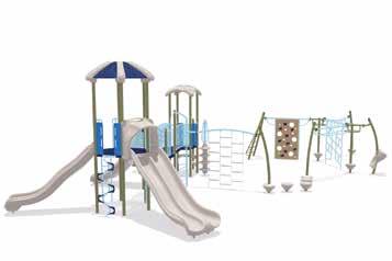 Every school deserves a great place to play. This playground is designed specifically for schools looking to maximize their budget, delivering lots of physical activity without compromising on fun. Freestanding play experiences, such as the Sensory Dome and Duo Spinner, are placed near the central system, creating fun, social play experiences students love.