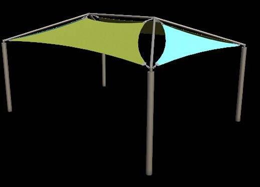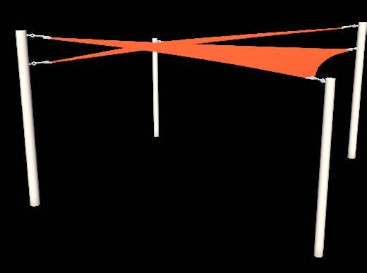 • Sails that use different attachment heights to form a three-dimensional canopy profile