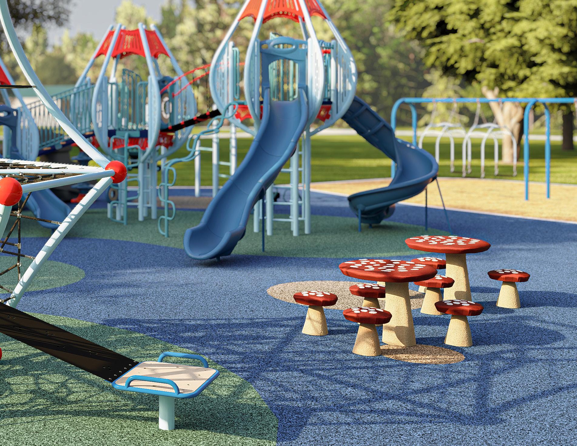 Ground level play activities allow users to play together