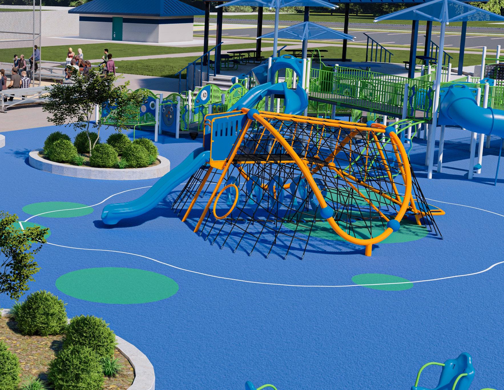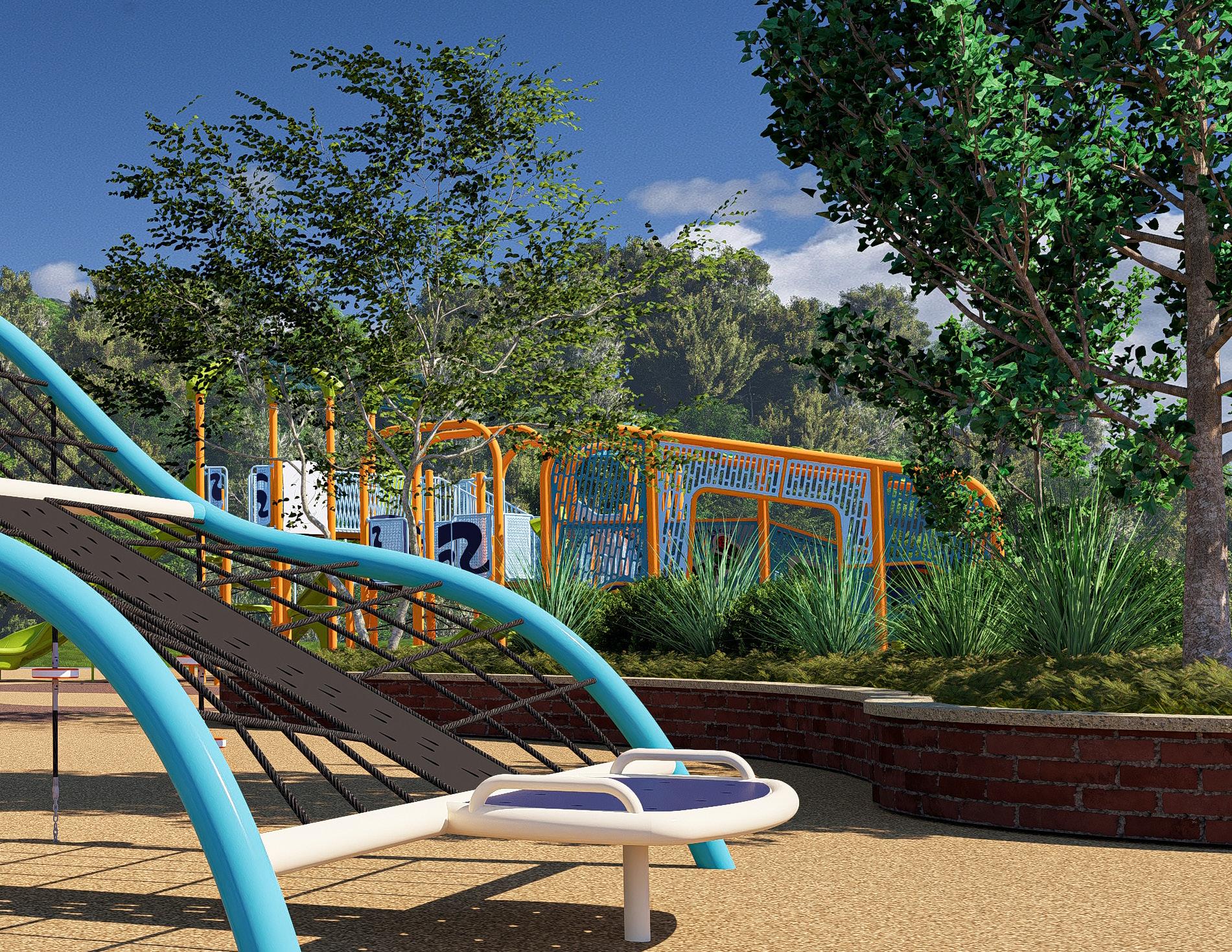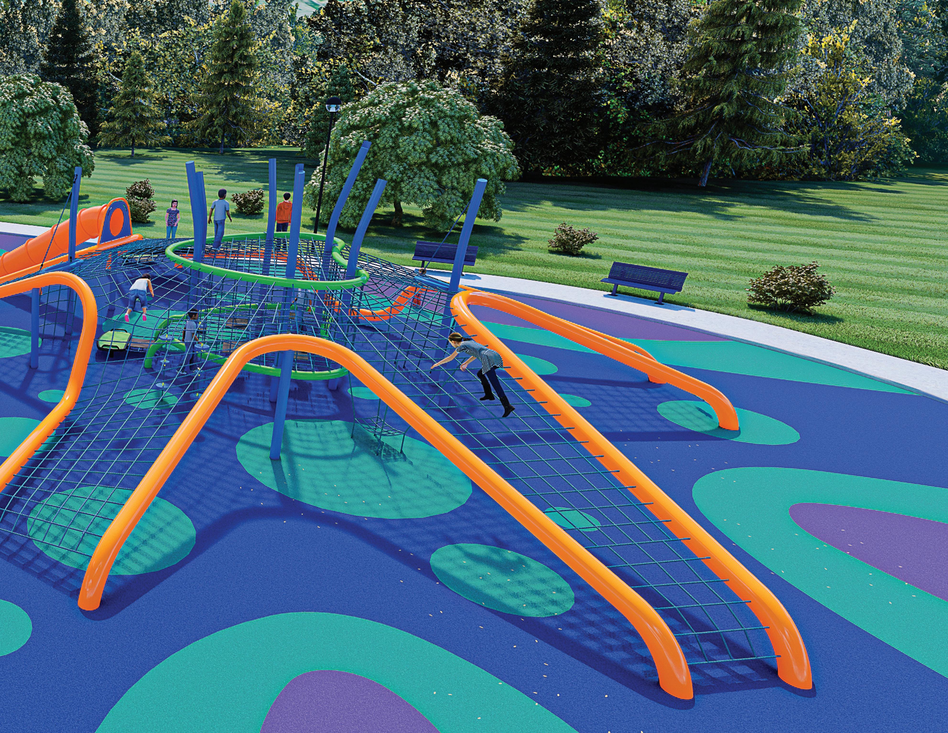 Transfer platforms and accessible routes create inclusive play experiences.