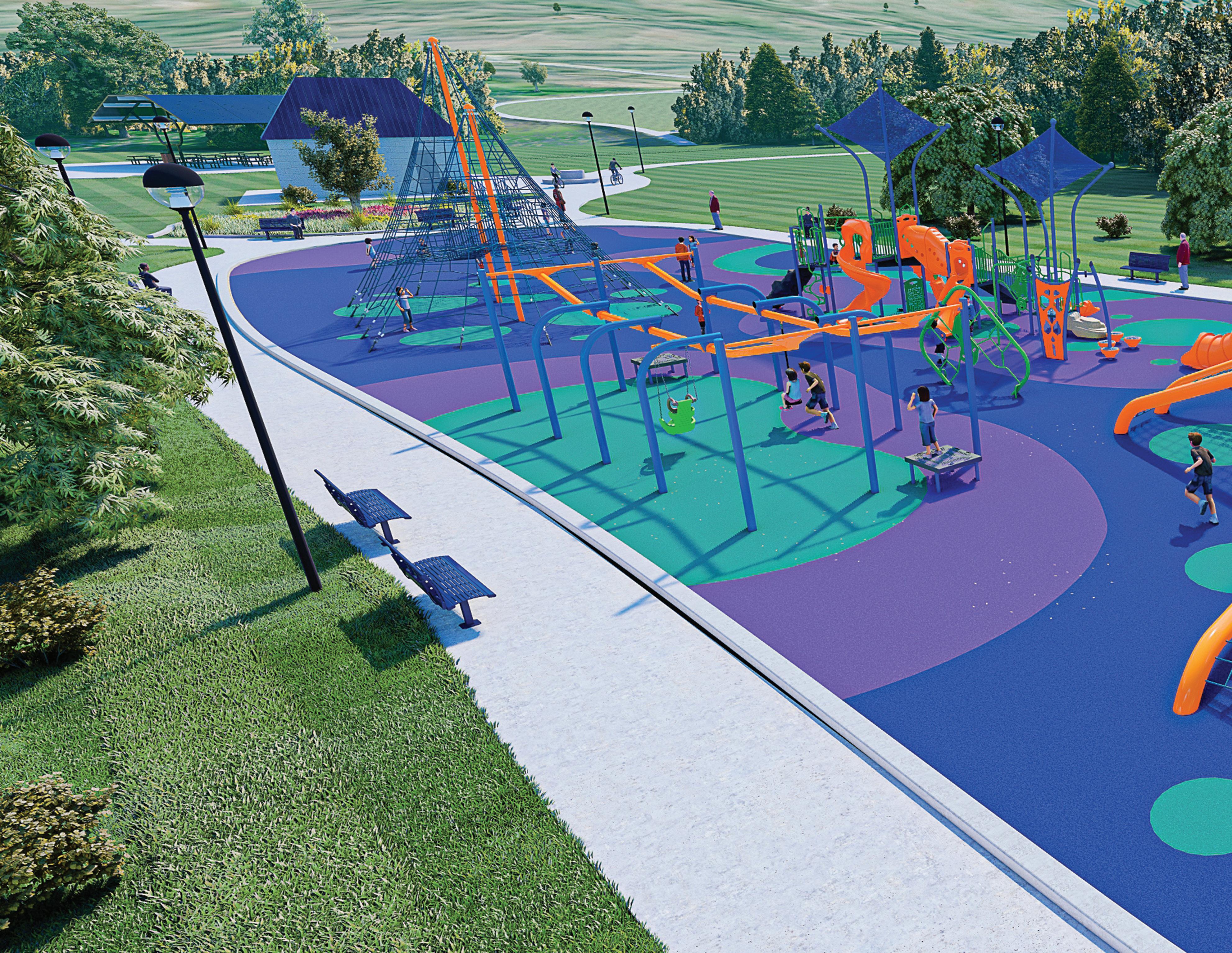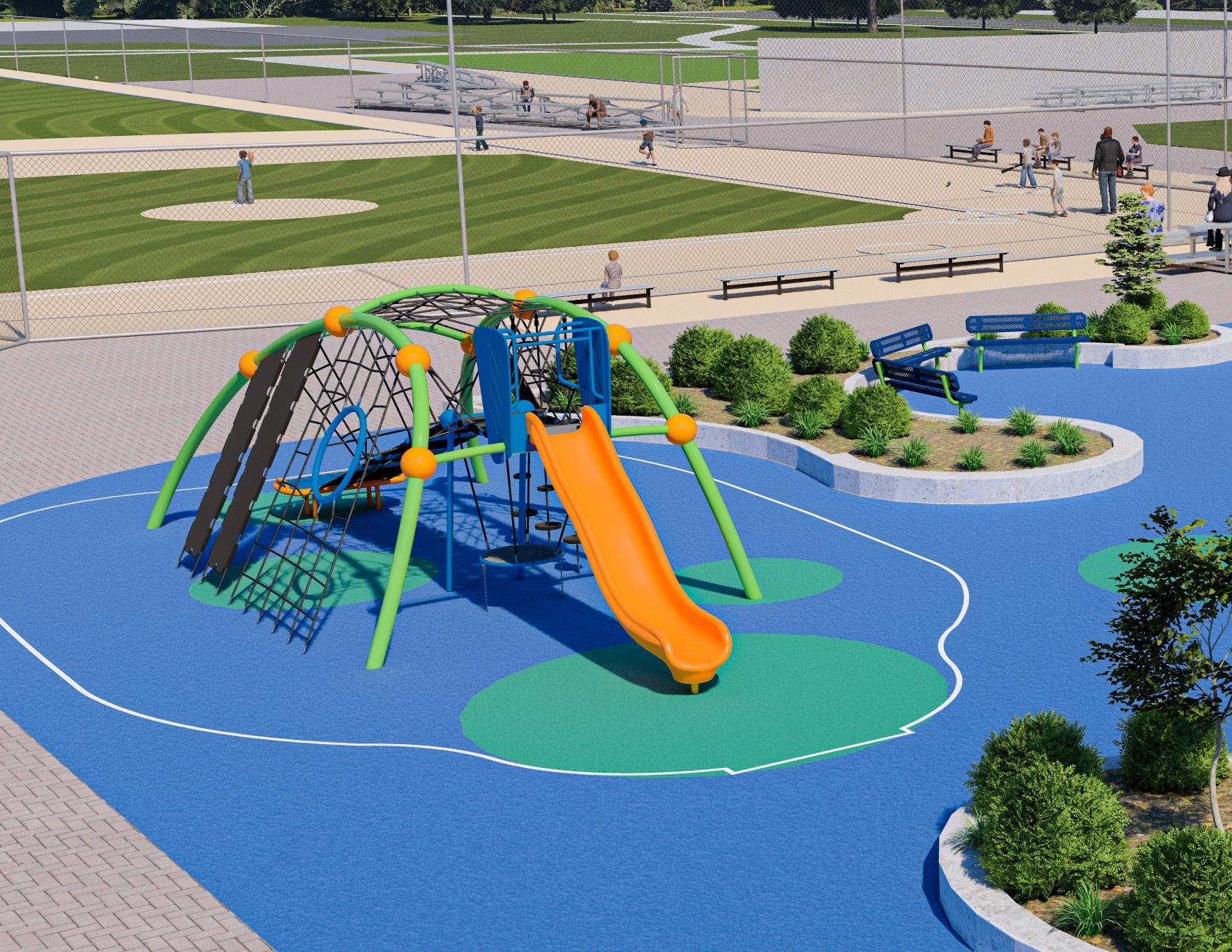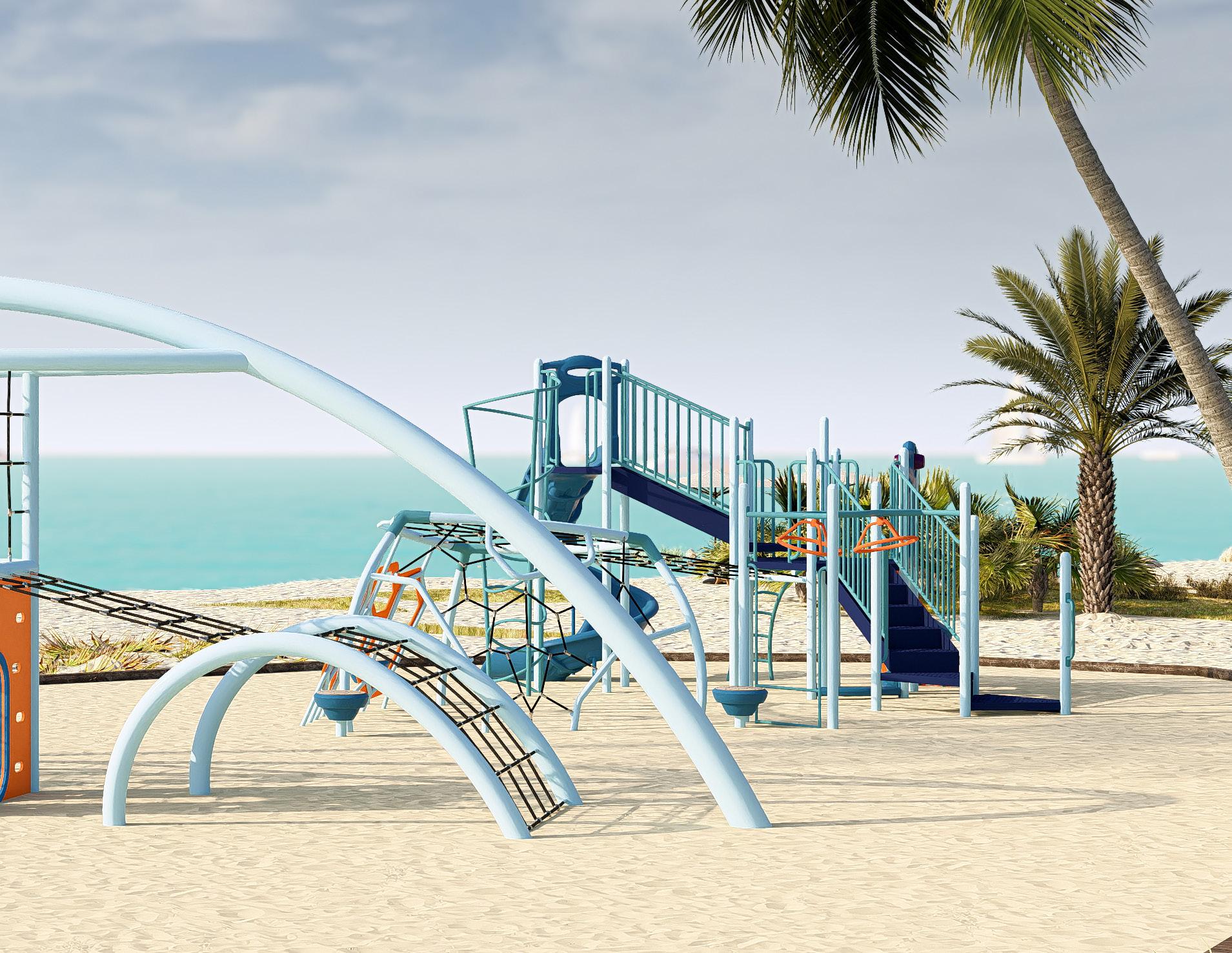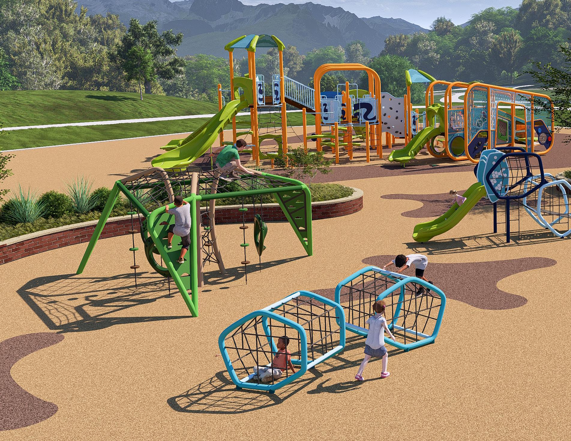 Transfer platforms and accessible routes create inclusive play experiences.
