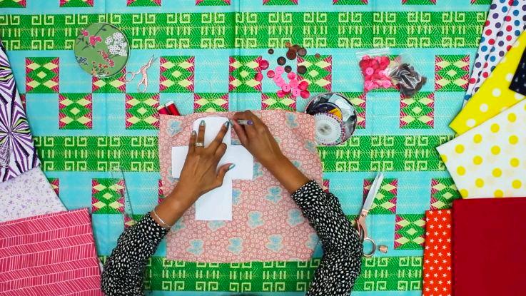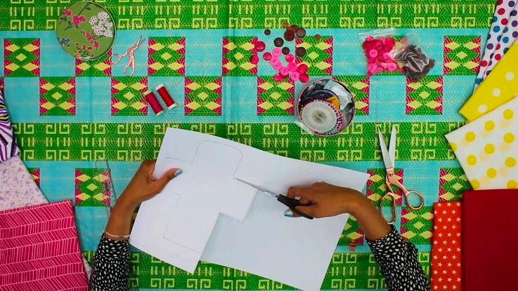 Reverse the cotton fabric or material and trace the template over it using a marker. Trace the template twice to create two pieces / d