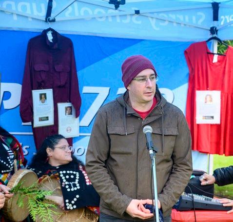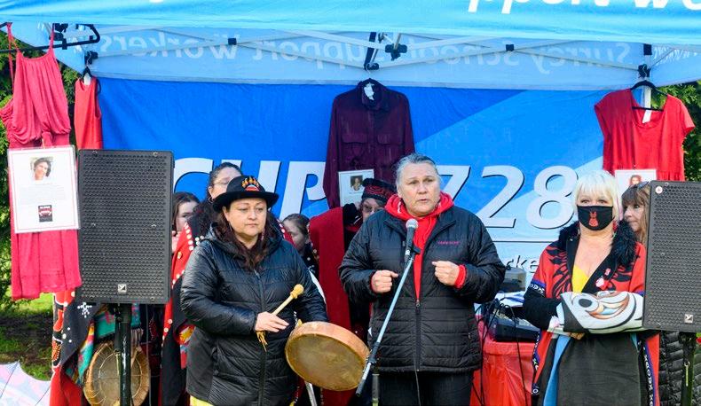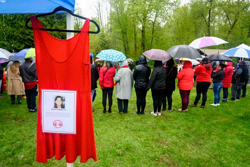 Creek Park on May 5 to mark the National Day of Awareness for Missing and Murdered Indigenous Women, Girls, Two Spirit and Non-Binary People. The event was organized by CUPE 728 (Surrey Schools) with assistance from the Hospital Employees’ Union.