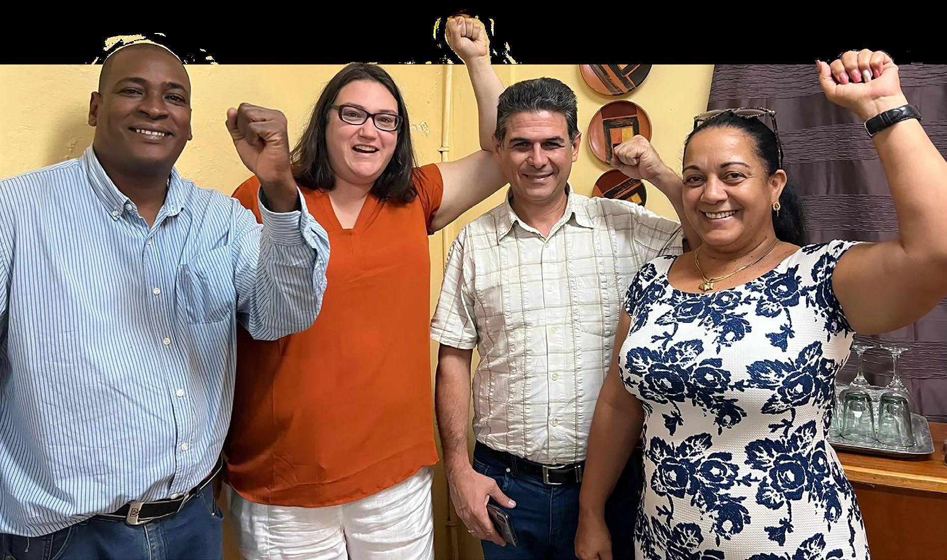 VIVA CUBA! During an October visit to Cuba to meet with partner unions, CUPE BC President Karen Ranalletta took time out with (from left) Yaisel Osvaldo Pieter Terry, Secretary General of the National Union of Public Administration Workers (SNTAP); Alfredo Vázquez Pérez, Havana Secretary General for the Workers’ Central Union of Cuba; and Arisleidys Hidalgo Leyva, Secretary General of the Provincial Union of Public Administration Workers – Havana Province.