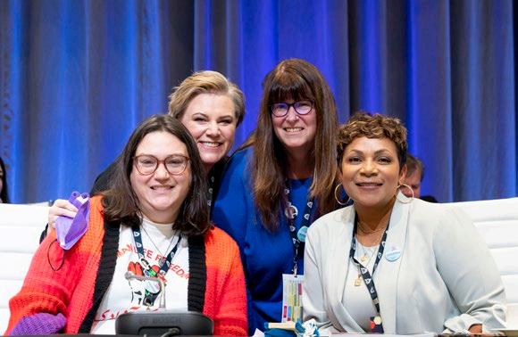 SOLID SUPPORT Karen Ranalletta and CUPE National Diversity Vice-President Debra Merrier (orange shirt), from B.C., and CUPE leaders from Quebec (right) and New Brunswick (left) join CUPE Ontario President Fred Hahn (centre) in supporting the 55,000 Ontario CUPE education workers the Doug Ford government tried to legislate back to work in early November. After mass rallies, CUPE and Labour solidarity forced the premier to withdraw the union-busting Bill 28.
