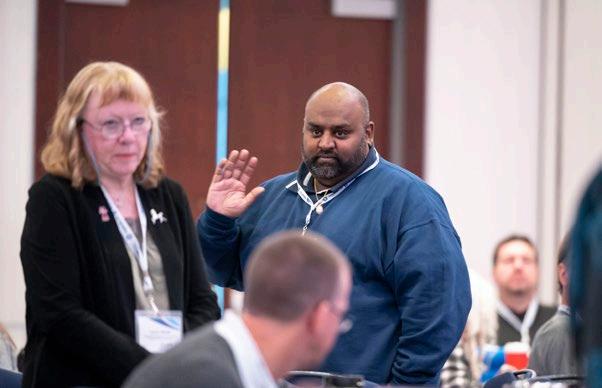 GREAT PARTICIPATION CUPE activists —forming the largest delegation to the 2022 BC Federation of Labour (BCFed) convention— gathered as a caucus to discuss issues and priorities, and to endorse candidates for the BC Fed executive.