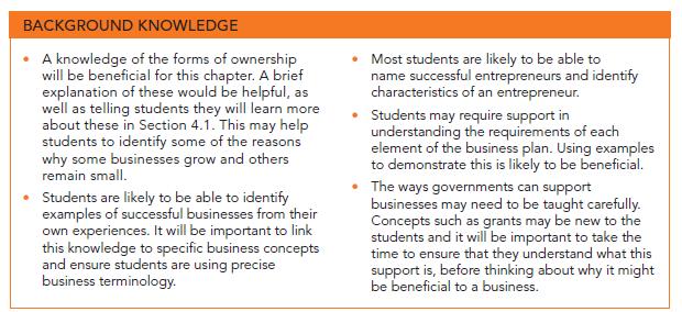 Explains the prior knowledge required to access the chapter and gives suggestions for addressing any gaps in students’ knowledge