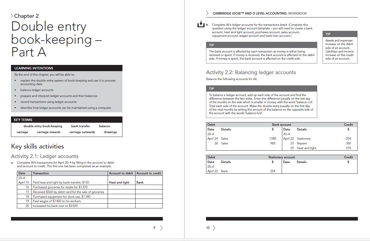 A range of tasks to help students consolidate, practice and reinforce their knowledge and understanding of accounting practice.
