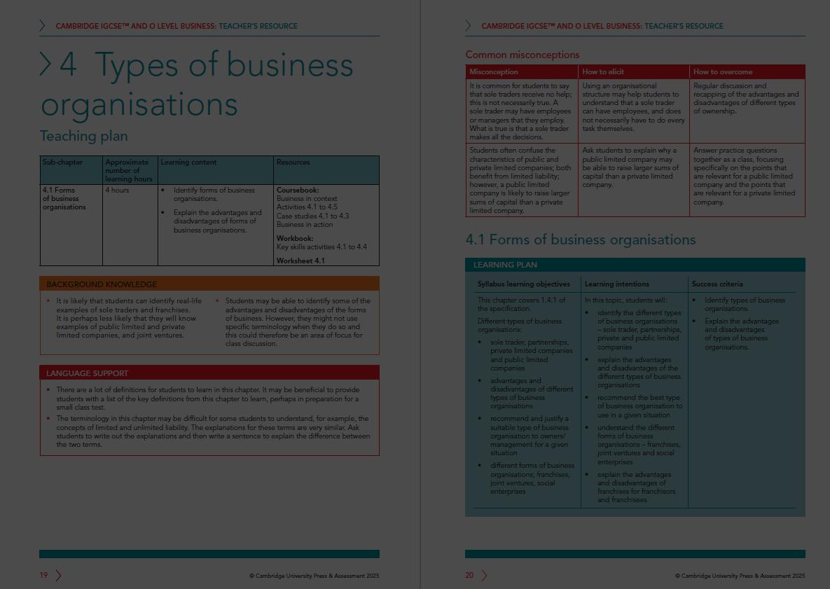 • Align more closely with Cambridge IGCSE Business and Cambridge IGCSE Economics.