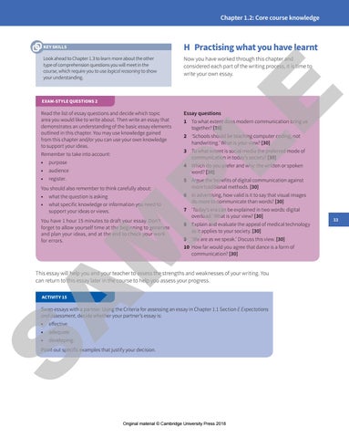 Swap essays with a partner. Using the Criteria for assessing an essay in Chapter 1.1 Section E Expectations and assessment, decide whether your partner’s essay is: effective