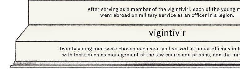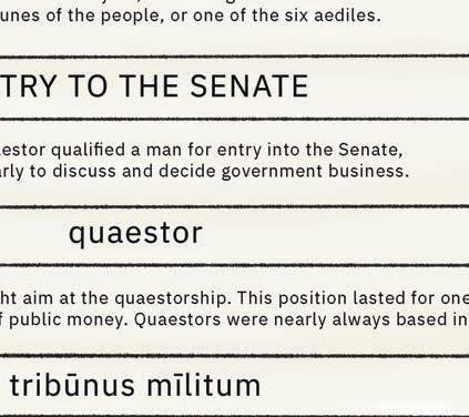 We tribunes have our houses on the via prīncipālis, opposite the principia. They’re not quite as big or as pleasant as the legatus’ house, but they’re not too shabby either! Mine is organized around a courtyard that I use for entertaining guests or when I just want a bit of peace and quiet from the rest of the fortress. My house is much better than the barracks that most of the soldiers live in. I sometimes hear them grumbling about how cramped it can be. I think it’s a good way to motivate them to work hard – if they earn a promotion to centurion or a member of the rst cohort then they can move into nicer accommodation. Not quite as good as mine, of course!